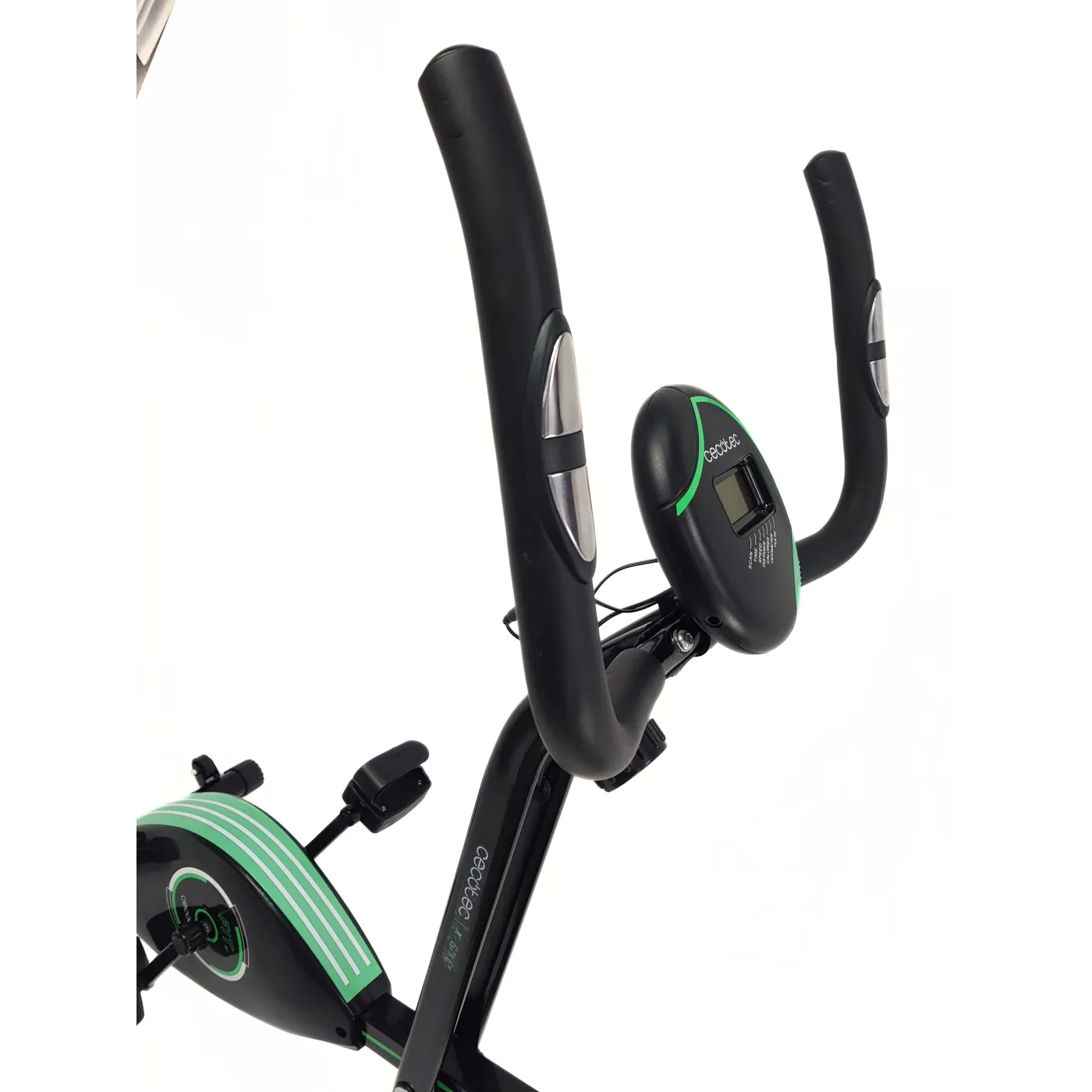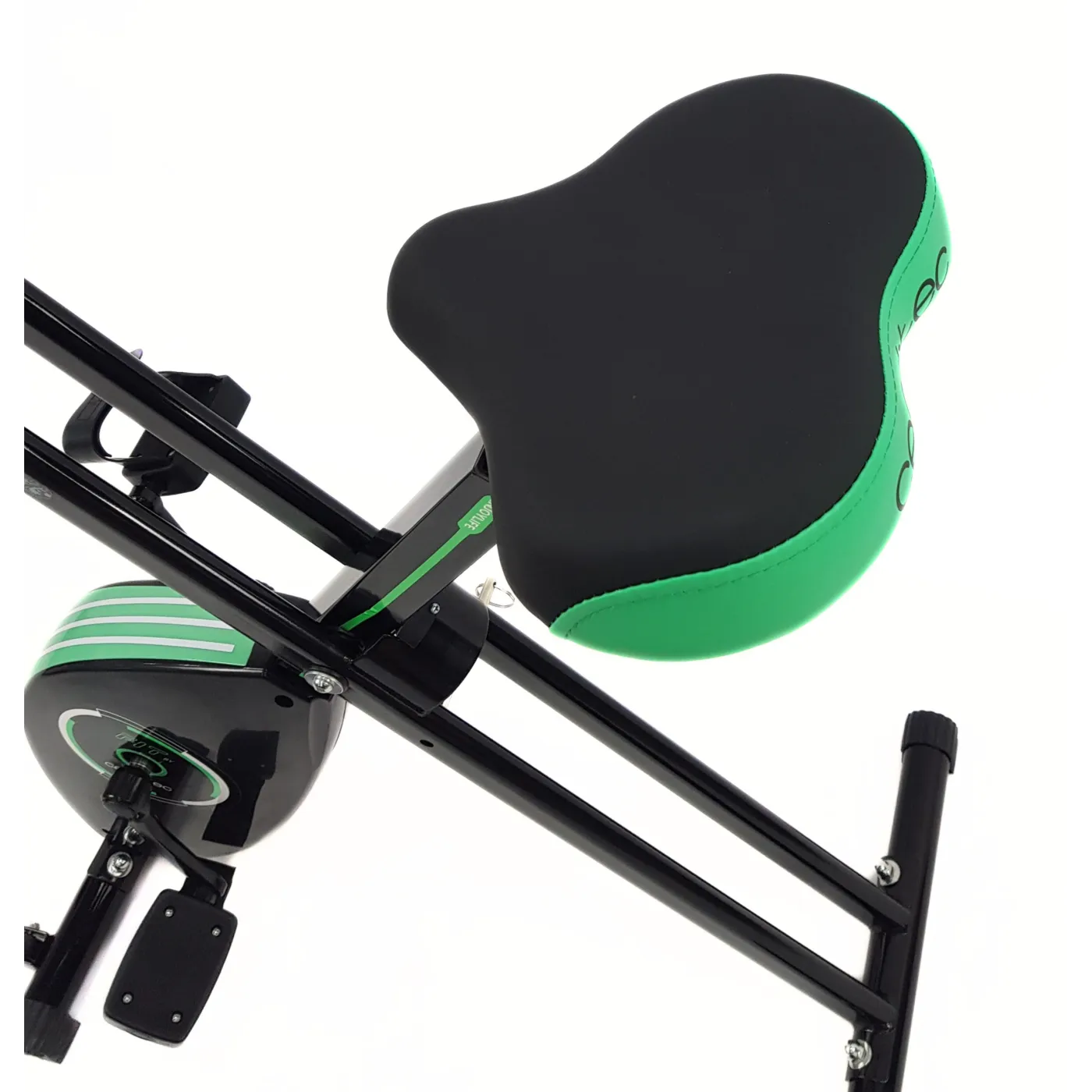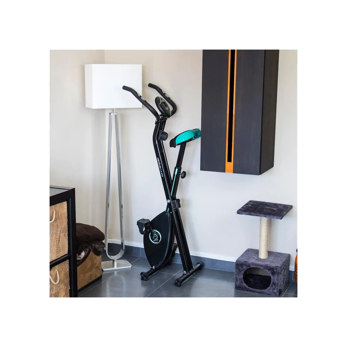 Cecotec X-Bike to idealne urządzenie do aktywnego treningu w domowym zaciszu. Składany model z obsługą magnetyczną zapewnia wygodną i efektywną jazdę bez zbędnego hałasu, dzięki systemowi Silence Fit. Monitor tętna pozwala na kontrolowanie pulsu podczas treningu, a ekran LCD wyświetla wszystkie niezbędne informacje, takie jak czas, prędkość, spalone kalorie, odległość i tętno.