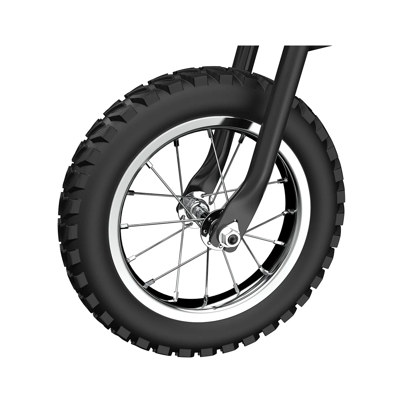 Motocykl elektryczny dla dzieci MX 125 to doskonałe rozwiązanie dla dzieci, które kochają aktywność na świeżym powietrzu. Dzięki przeniesieniu napędu łańcuchem z silnika na tylne koło, pojazd zapewnia wyjątkowe wrażenia podczas jazdy. Pompowane koła, z terenowymi oponami 12" pozwalają przemierzyć nie tylko chodniki i ścieżki rowerowe, ale również szutrowe drogi i trawniki, dzięki czemu maluch może jeździć praktycznie wszędzie.