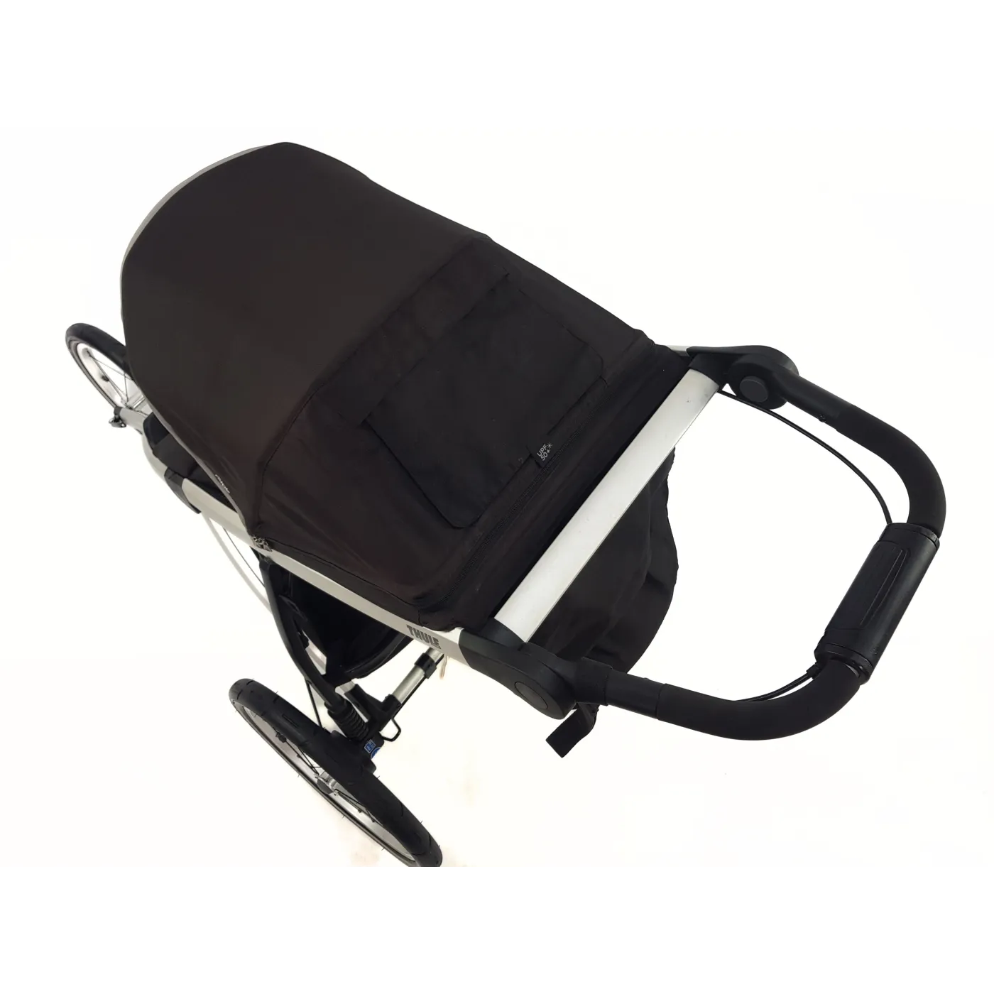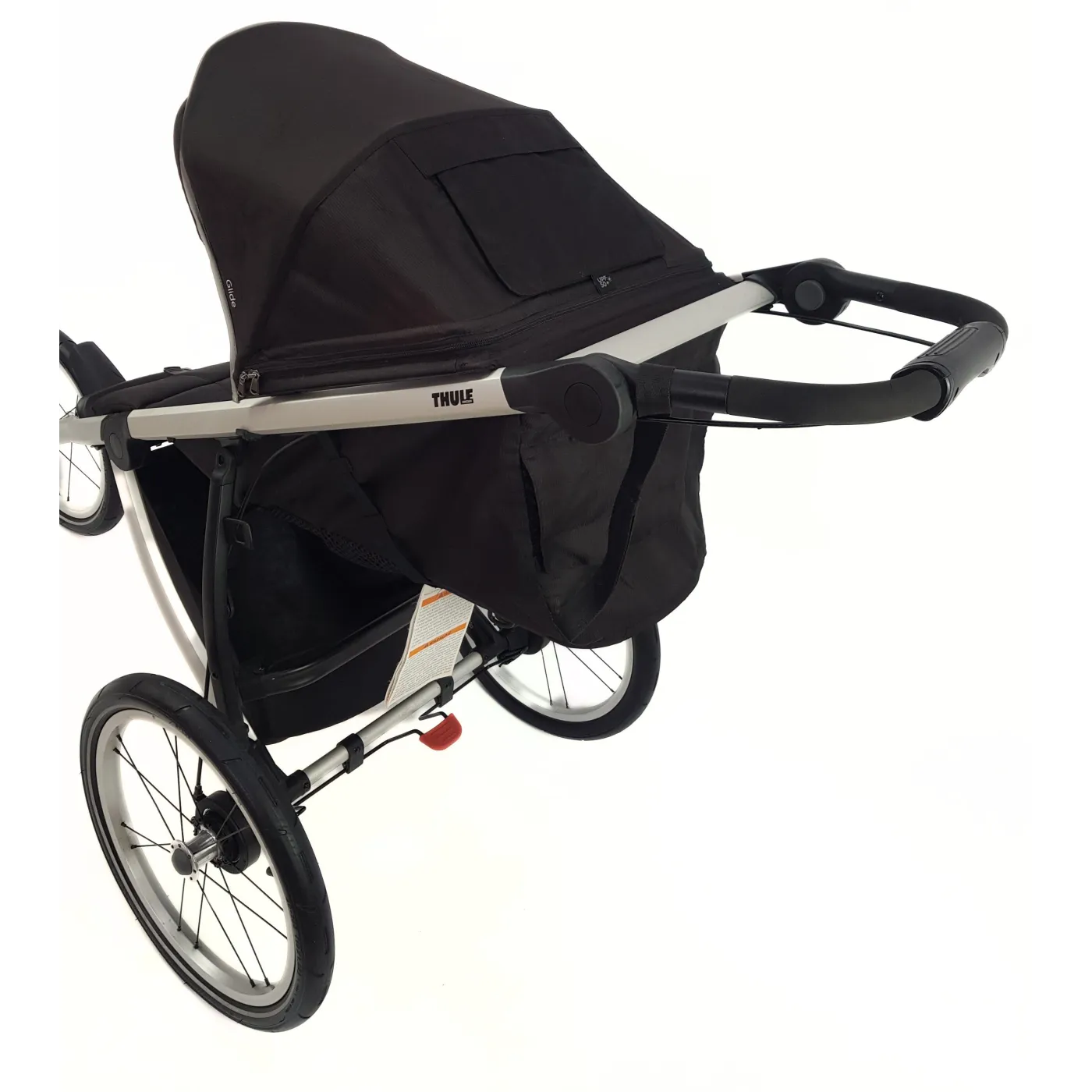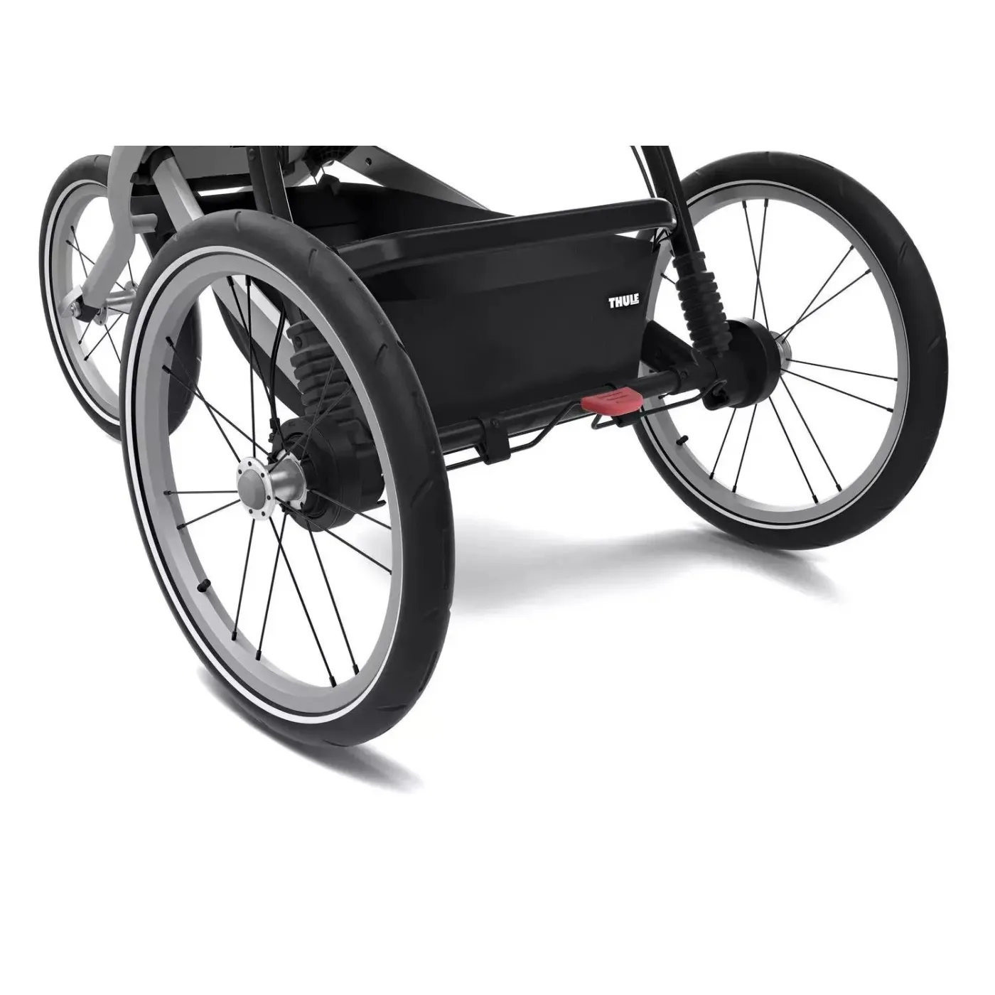 Wózek posiada duży koszyk z kieszeniami, w którym zmieścisz wszystko co niezbędne do pielęgnacji dziecka podczas spaceru. Dzięki Thule Glide 2 możesz też bezpiecznie spacerować lub biegać nocą gdyż posiada elementy odblaskowe na felgach oraz krawędzi daszka.