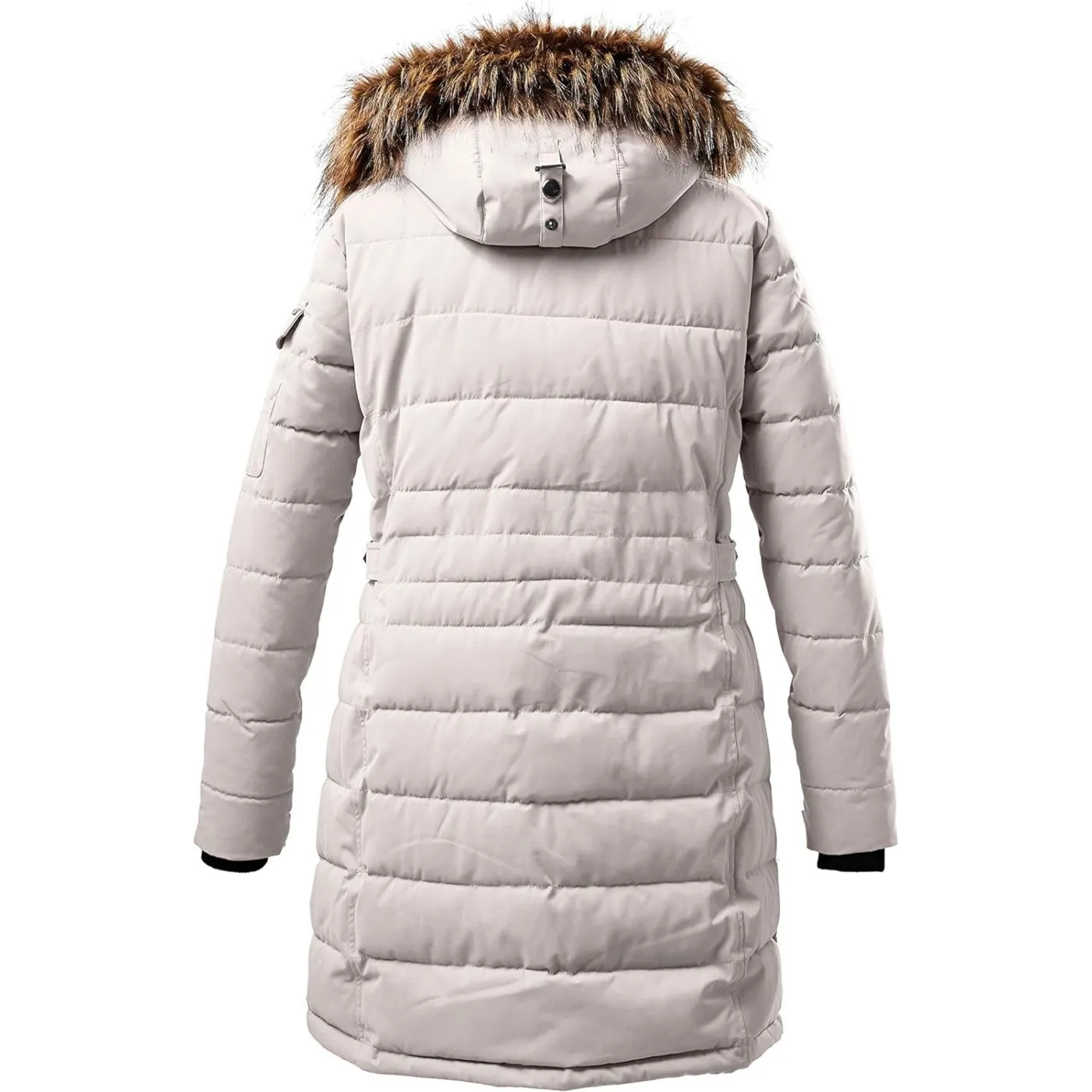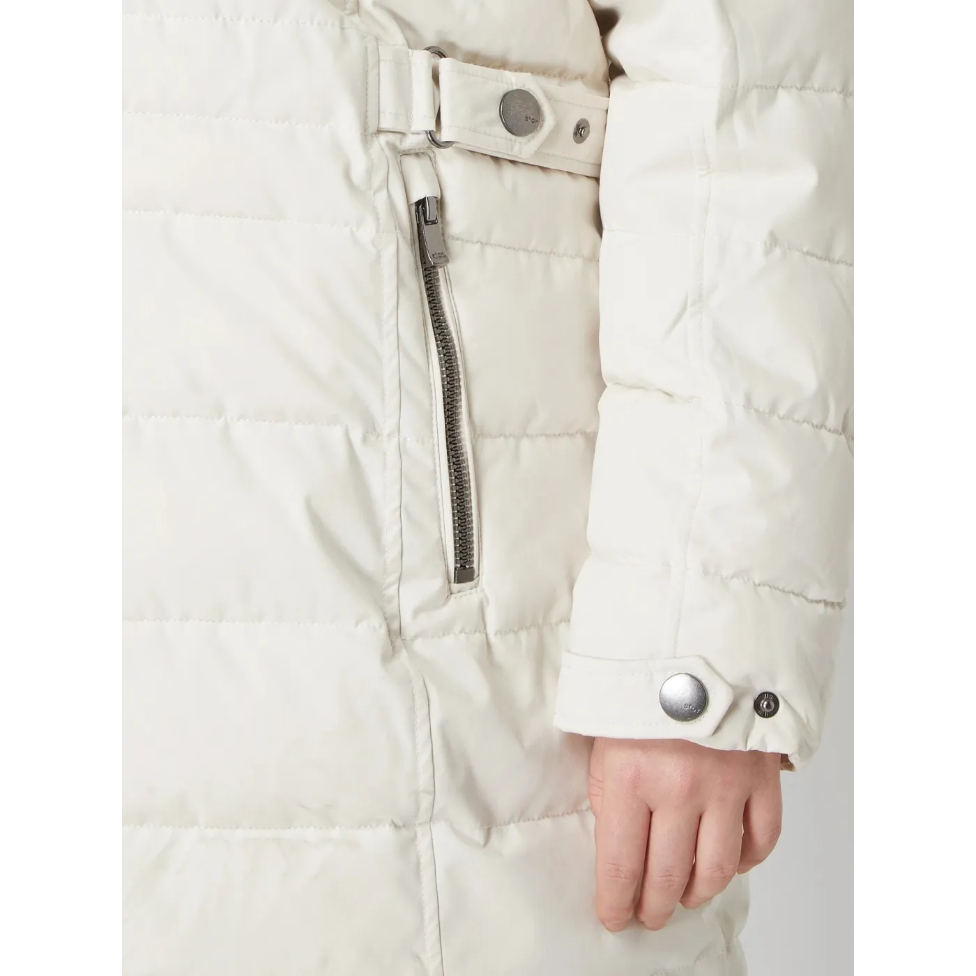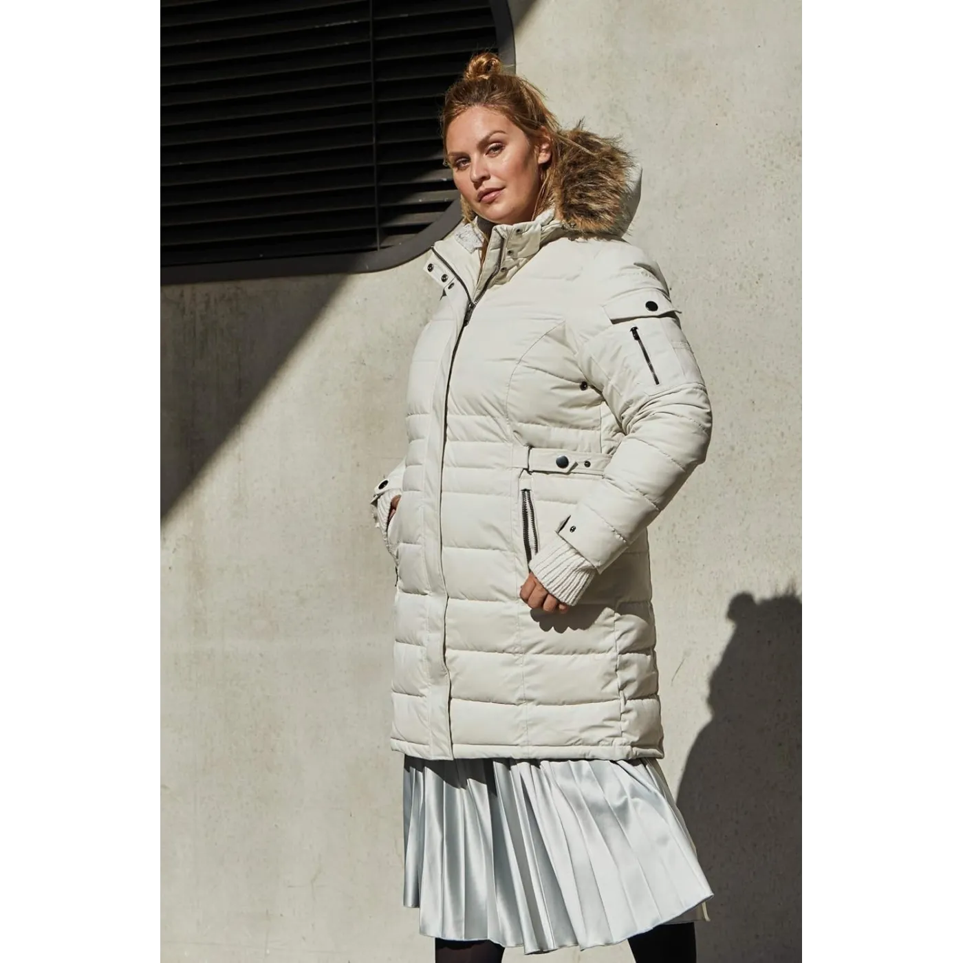 Ma taliowany krój, który podkreśla kobiecą sylwetkę. Odpinany kaptur oraz stójka z podszewką ze sztucznego futra dają dodatkową ochronę przed chłodem. Dodatkowo, sztuczne futro można łatwo odpiąć, co pozwala dostosować parkę do zmieniającej się pogody.