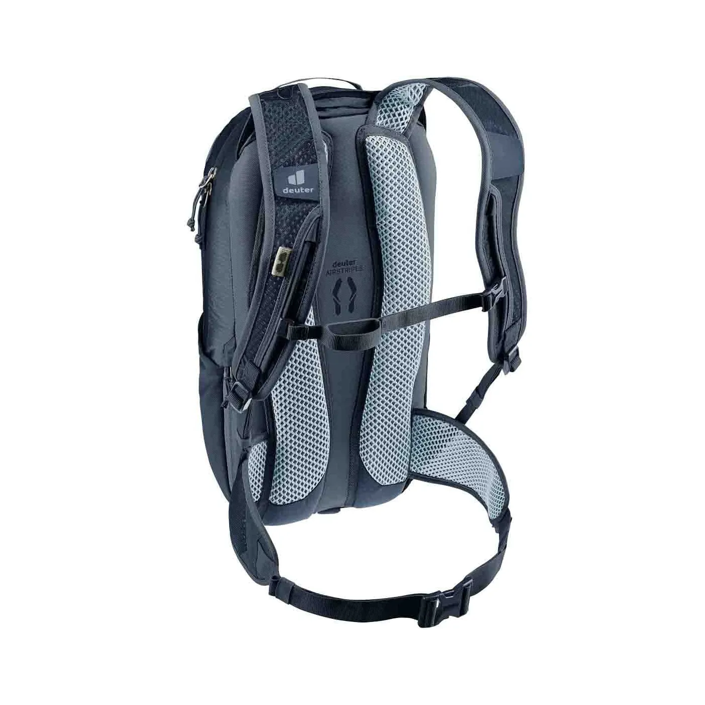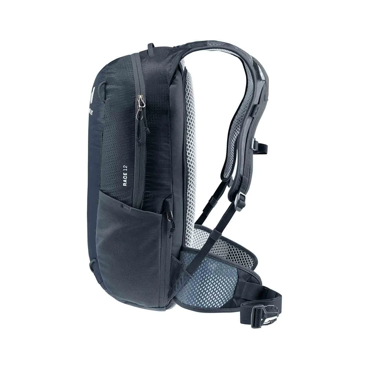 Deuter Race 12 posiada system nośny Airstripes System, stworzony z myślą o rowerzystach, wykonany jest z dwóch konturowanych pasów ze specjalnej pianki pokrytej tkaniną 3D AIR MESH. Struktura wyżłobionej pianki umożliwia swobodną cyrkulację powietrza na powierzchni pleców. Pas biodrowy i ukształtowane anatomicznie szelki uprzęży, pokryto oddychająca tkaniną dla lepszej cyrkulacji powietrza. Ich konstrukcja zapewnia lepsze dopasowanie plecaka. Kanał wentylacyjny który znajduje się pomiędzy rzędami obu poduszek pełni również oprócz funkcji chłodzącej ważną rolę w ochronie kręgosłupa.