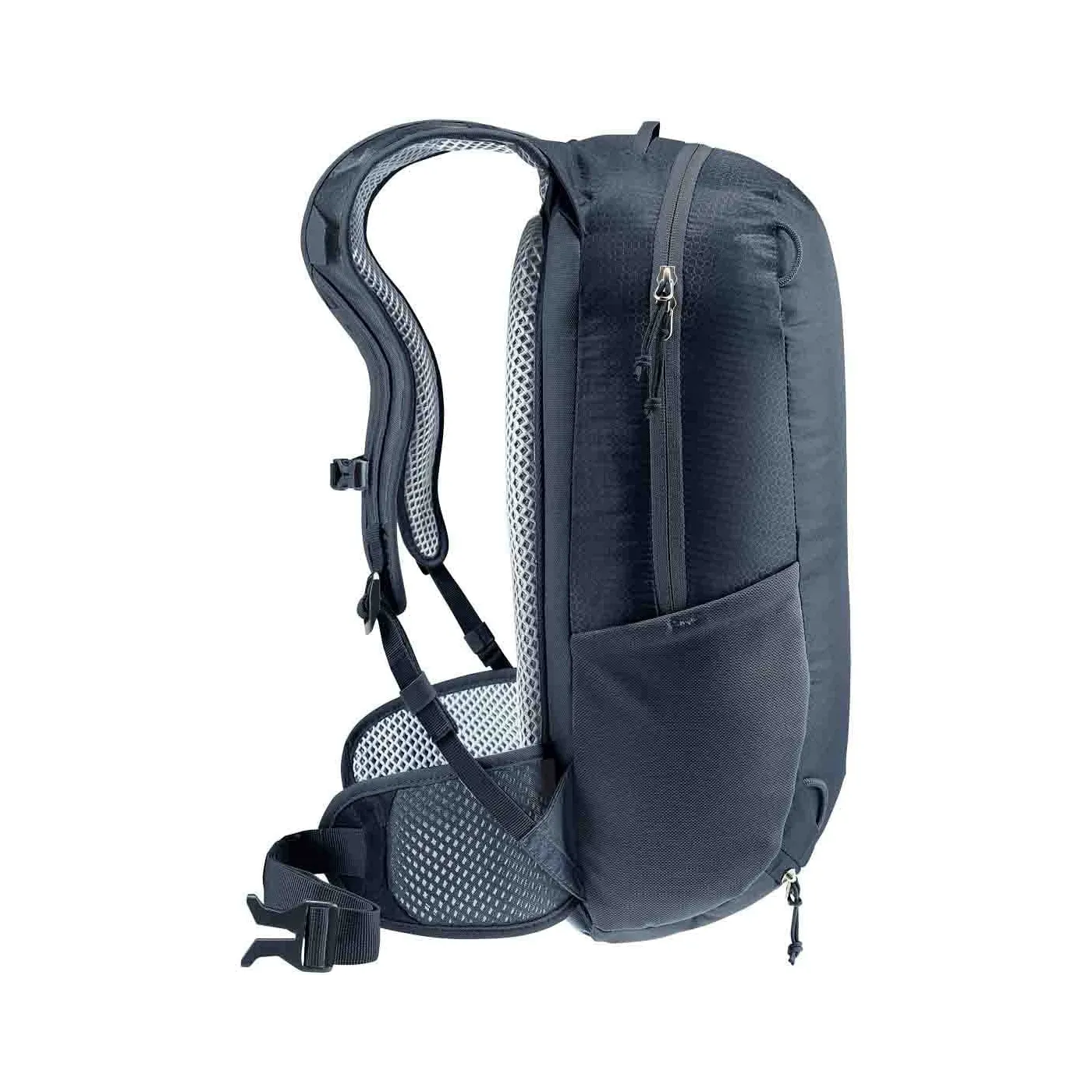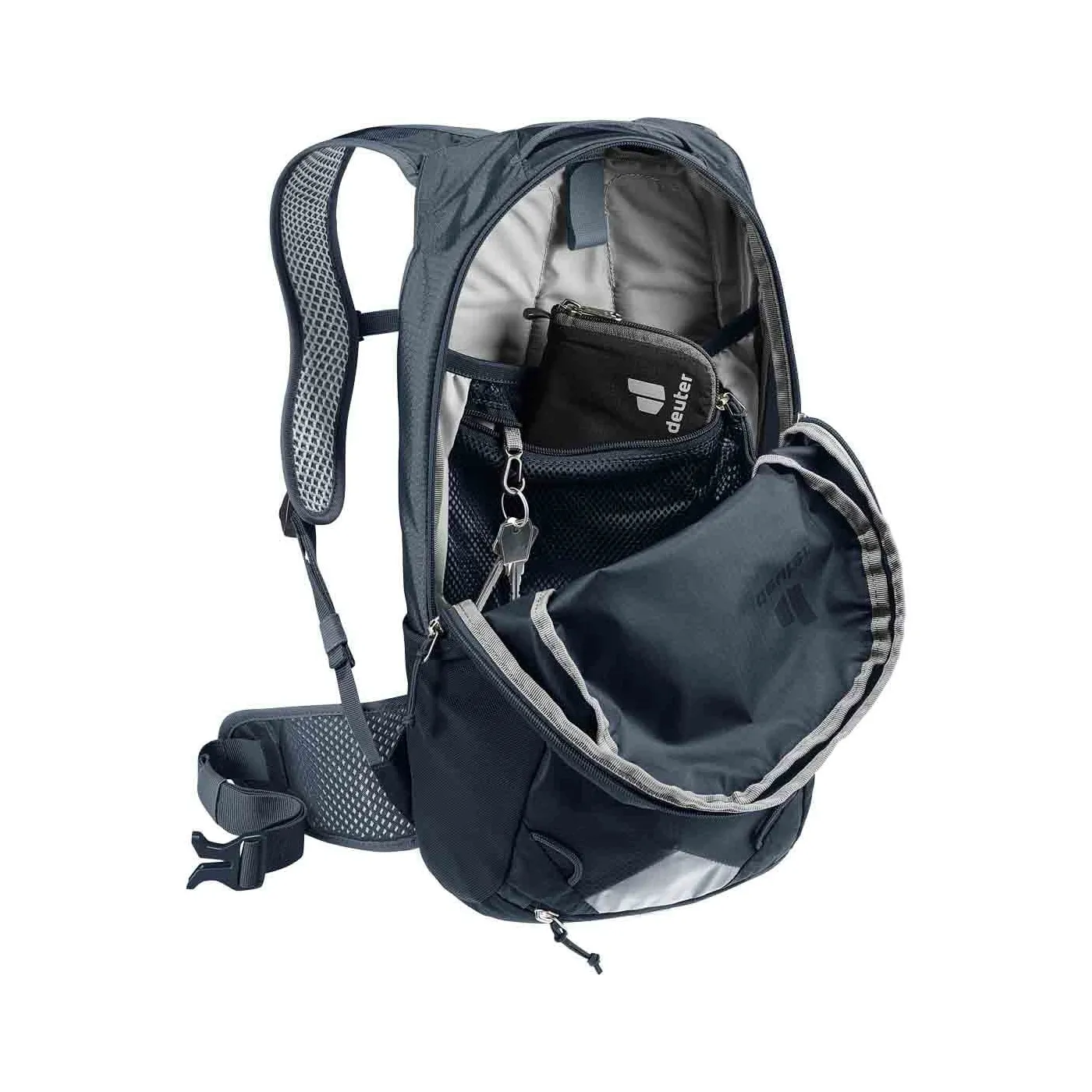 Deuter Race 12 to plecak o pojemności 12 litrów, przeznaczony na jednodniowe, rowerowe wypady w teren. Zaprojektowany został dla użytkowników którzy preferują niską wagę. Plecak jest wykonany z pochodzącego z recyklingu, lekkiego i wytrzymałego materiału. Dzięki temu waży jedynie 560 gramów. Dodatkowo materiały zabezpieczone zostały powłoką DWR poprawiającą wodoodporność i zmniejszającą podatność na zabrudzenia.