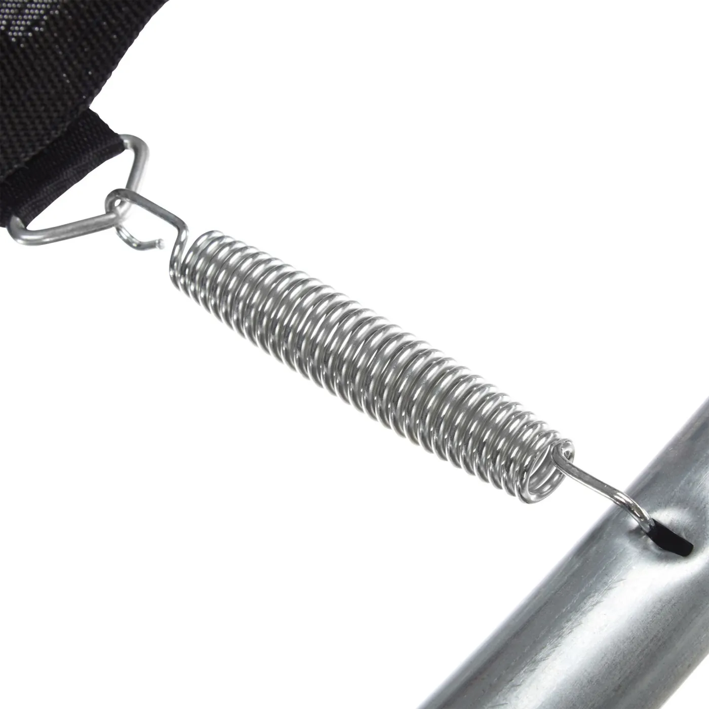 Model ten został wyposażony w wyściełaną krawędź ochronną, która zakrywa ramę i zapobiega przypadkowym obrażeniom podczas skoków. Trampolina powinna być składana zawsze przez dwie osoby i stawiana na miękkim podłożu, takim jak trawnik lub mata zabezpieczająca. Pamiętaj również o przytwierdzeniu trampoliny do podłoża, aby uniknąć ewentualnych przewróceń i urazów.