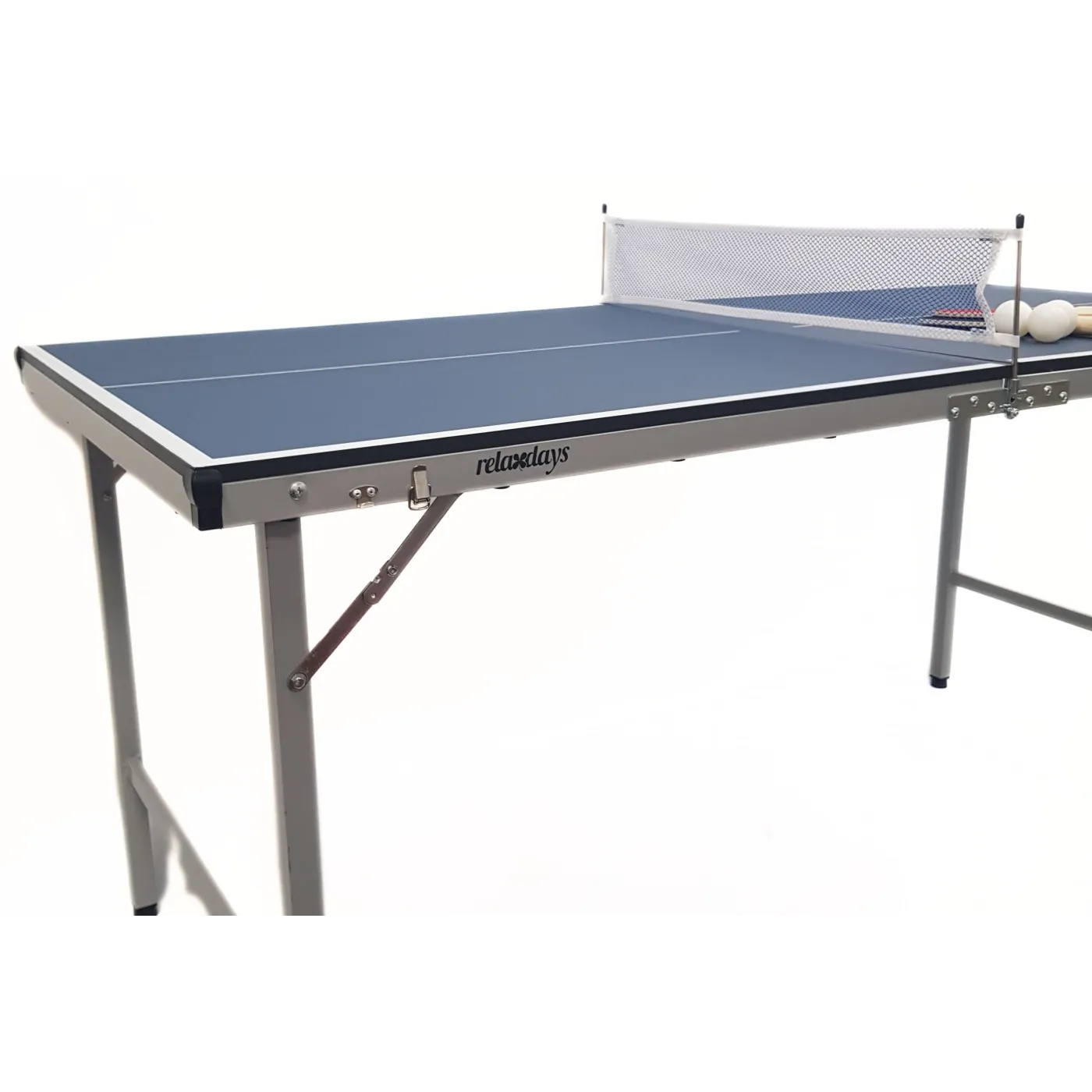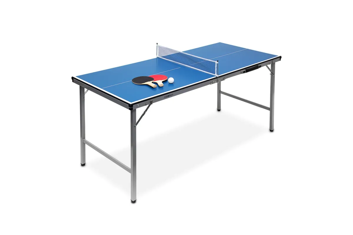Posiada odpowiedni rozmiar midi, co sprawia, że jest idealny zarówno dla dzieci, jak i dorosłych. W zestawie znajdują się również wszystkie niezbędne akcesoria do tenisa stołowego, takie jak piłeczki, rakietki i siatka. Nóżki stołu mają regulowaną wysokość, co pozwala dostosować je do własnych potrzeb.