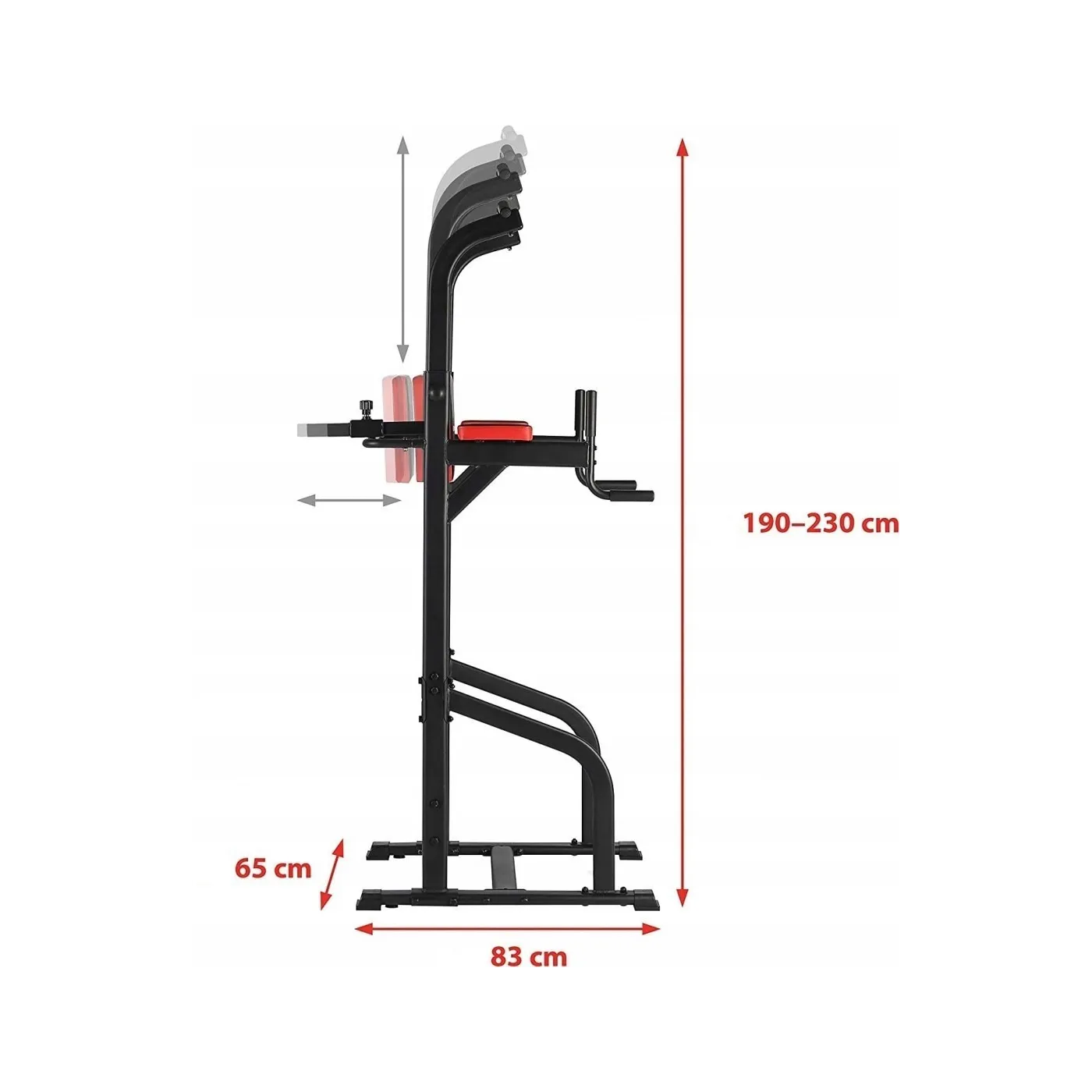 Dzięki Ultrasport Power Tower, Twój dom może zostać przekształcony w w pełni funkcjonalną siłownię. Zintegrowane uchwyty do pompek, górny drążek poprzeczny do podciągania oraz podłokietniki umożliwiają szeroką gamę ćwiczeń, które pomogą w budowaniu mięśni brzucha, klatki piersiowej, ramion, barków i pleców.