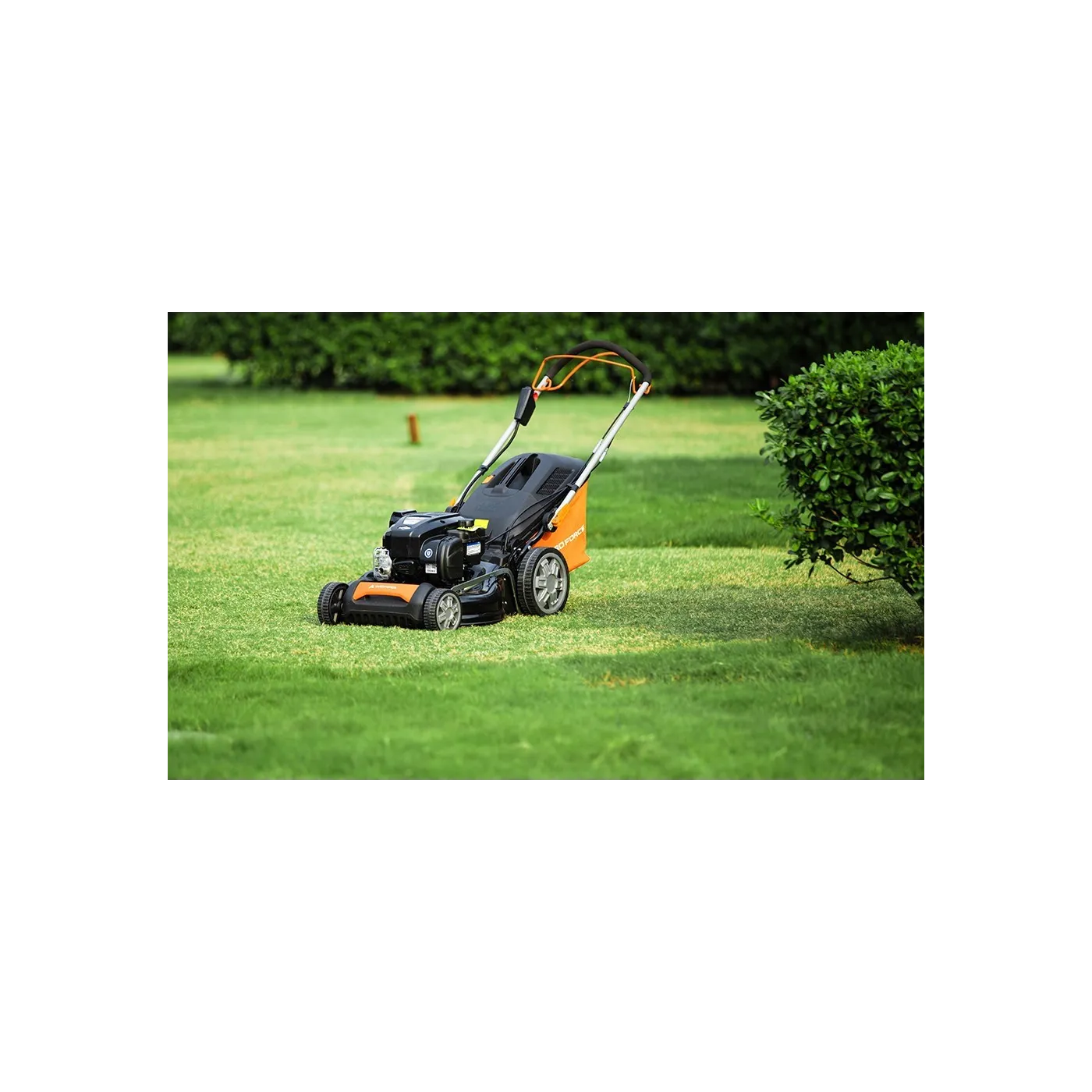 Yard Force GM B46CK to solidna maszyna, wyposażona w mocny silnik Briggs & Stratton 450E o pojemności 125 cm3, który posiada komfortowy i szybki starter Prime 'n Pull™ EZ. Kosiarka oferuje 7 regulowanych wysokości cięcia, co pozwala dostosować długość trawy od 25 mm do 75 mm, zapewniając idealne cięcie przez cały sezon koszenia.