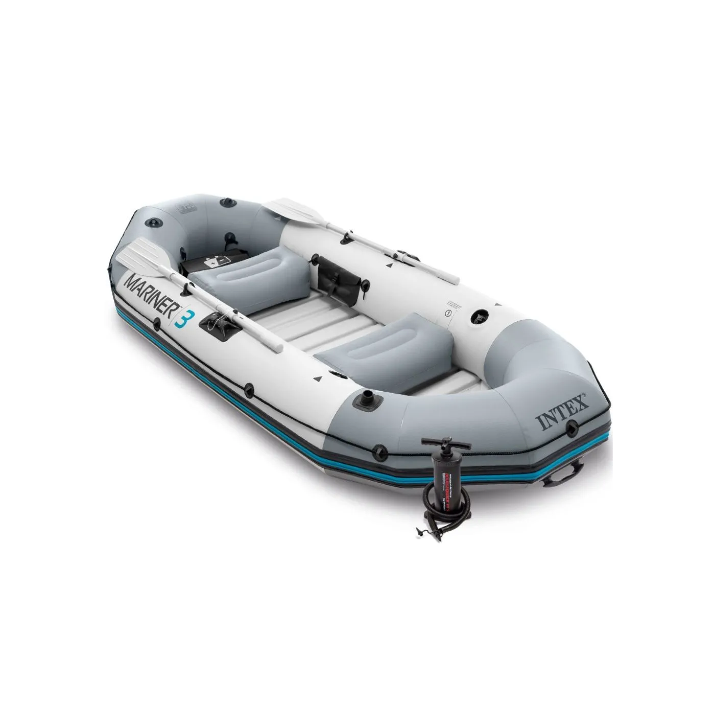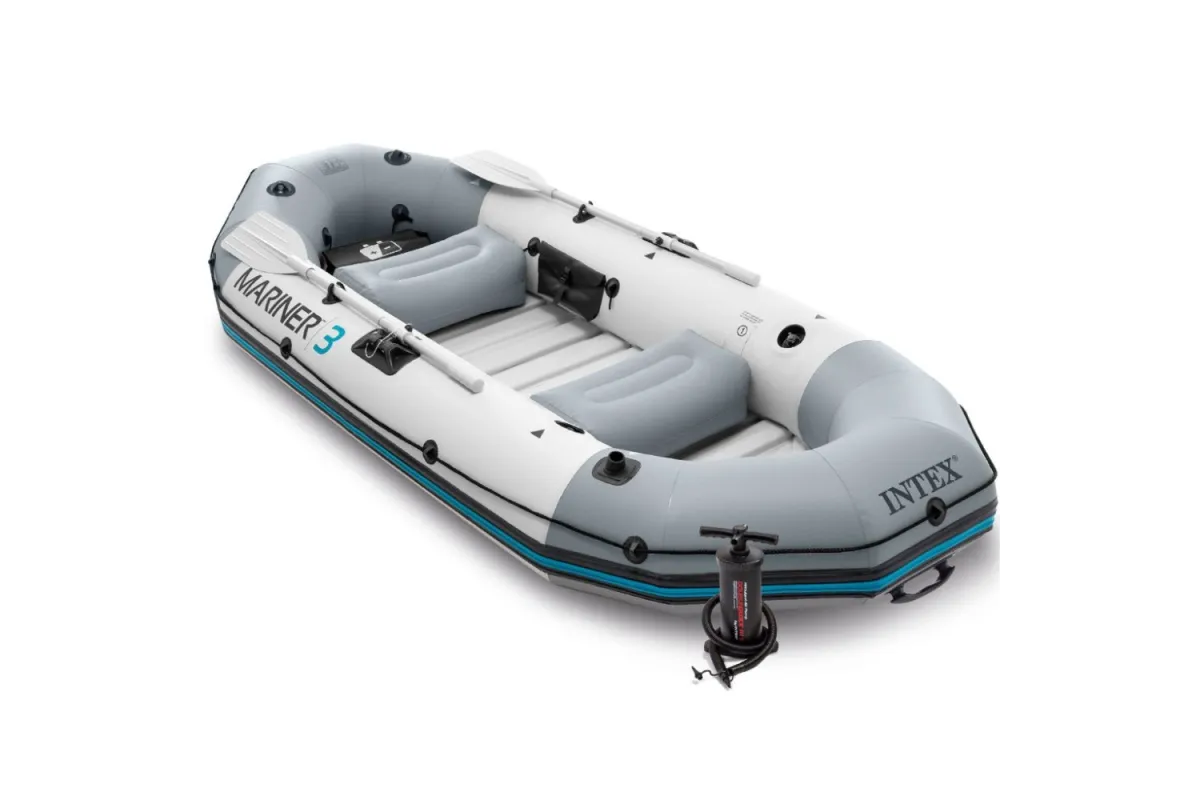 Intex Mariner 3 to idealny ponton dla trzech dorosłych osób, wykonany z najwyższej jakości, wytrzymałego tworzywa. Dzięki trzem warstwom materiału – dwóm zewnętrznym warstwom PVC i wewnętrznej warstwie poliestrowej siatki, ponton jest niezwykle wytrzymały i trwały. Sztywna podłoga z tworzywa sztucznego, zapewniają wysoką stabilność.