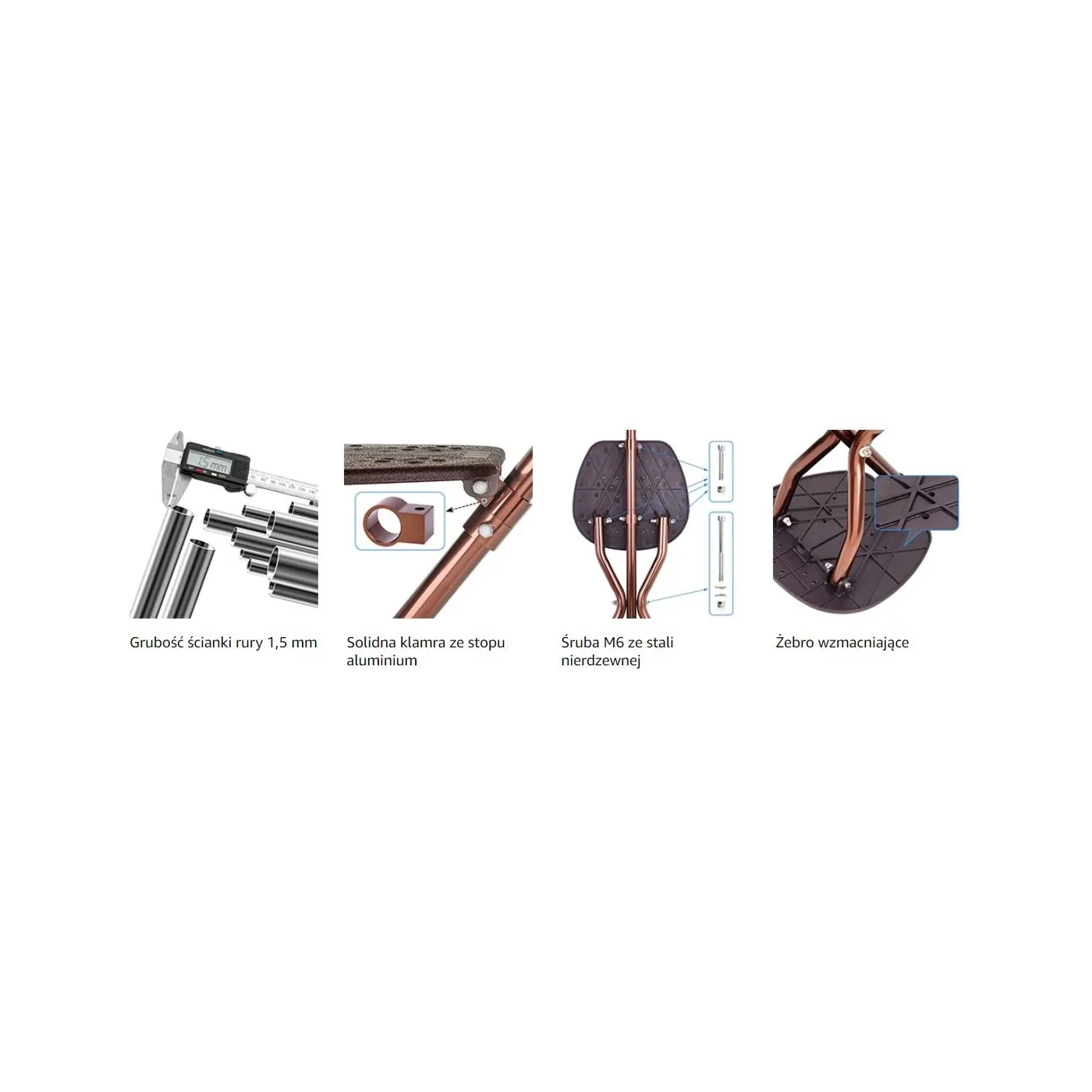 💪 Zastosowane rury ze stopu aluminium o grubości 1,5 mm zapewniają niezwykłą trwałość i odporność na odkształcenia pod ciężarem do 120 kg. Solidne klamry oraz mocno osadzone gumowe nóżki gwarantują stabilność i bezpieczeństwo, co jest kluczowe dla seniorów ceniących sobie niezależność. Waga zaledwie 1,13 kg sprawia, że transportowanie jej staje się banalnie proste.