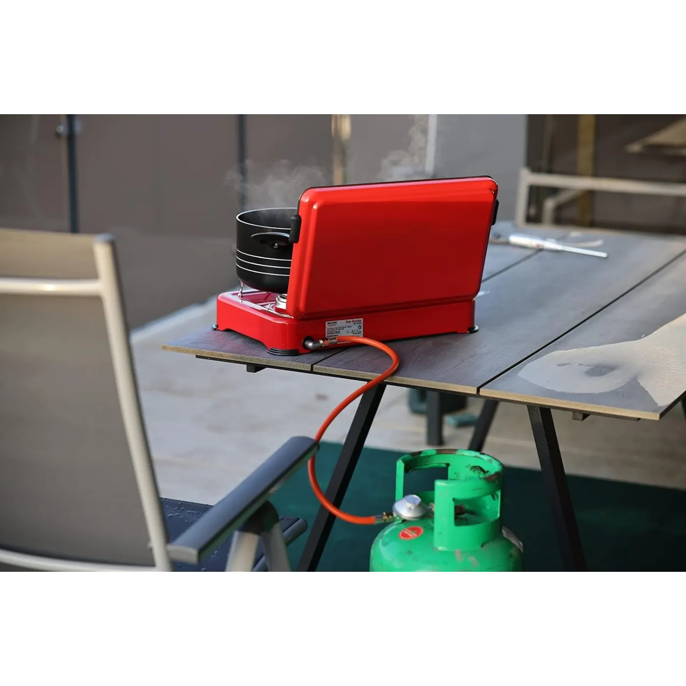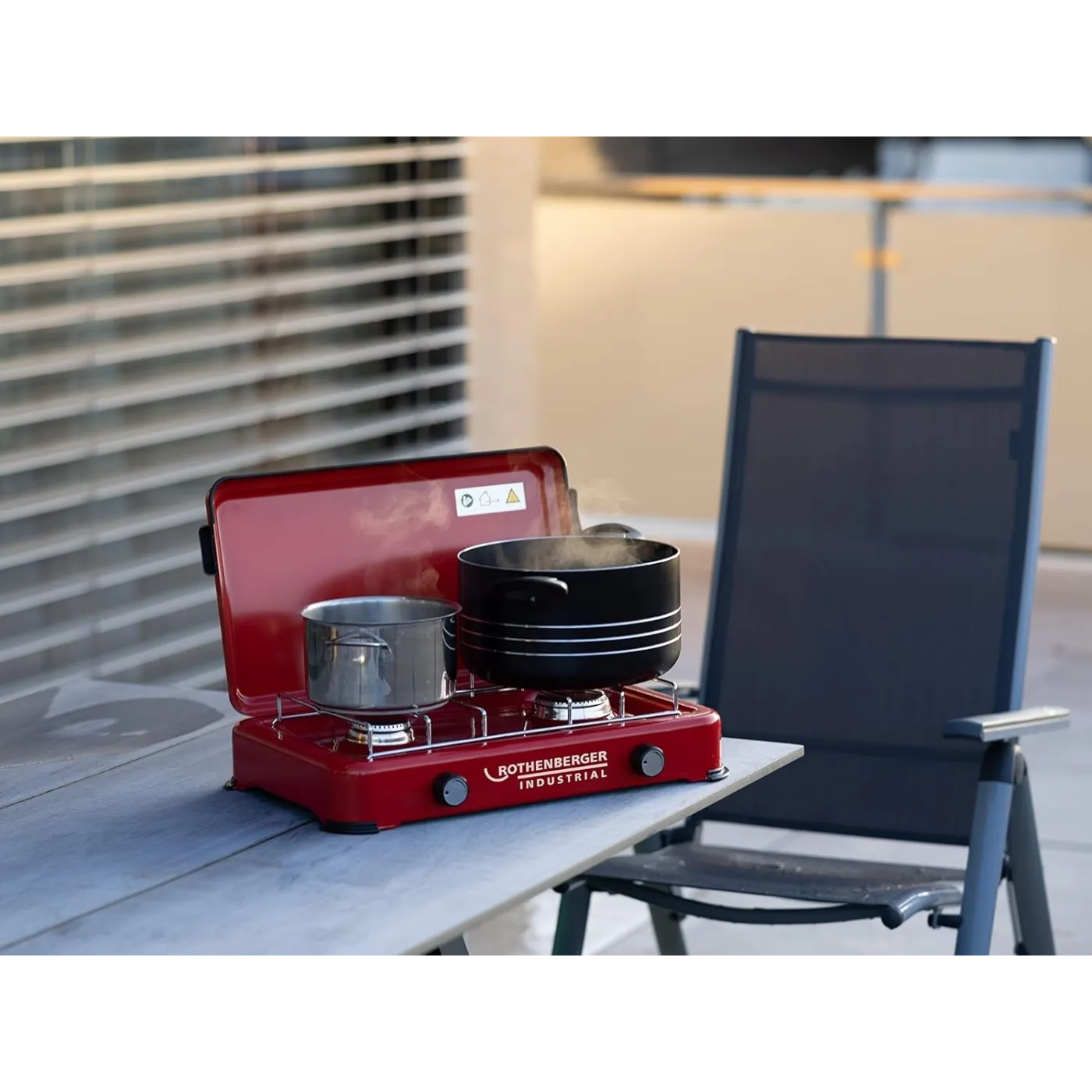 Kuchenka Rothenberger to idealne rozwiązanie dla miłośników kempingów i outdoorowych przygód. Model 35940, dostępny w atrakcyjnym czerwonym kolorze, charakteryzuje się dwoma palnikami, które gwarantują wszechstronność podczas przygotowywania posiłków w terenie. Duży o mocy 1,70 kW oraz średni 1,20 kW umożliwiają wygodne gotowanie, grillowanie czy podgrzewanie potraw w różnych warunkach.