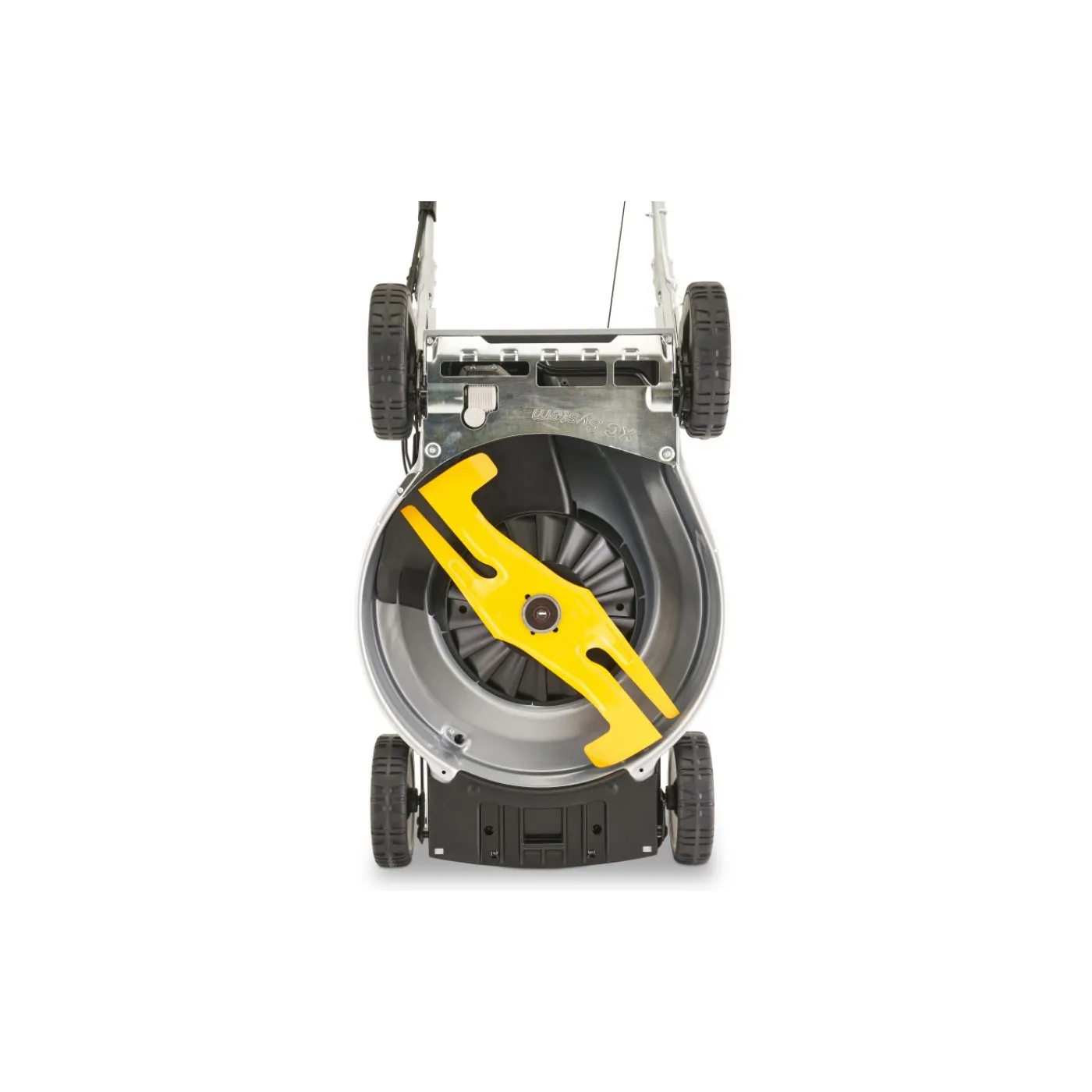 Urządzenie zostało wyposażone w silnik Honda GCVx200 OHV o pojemności 201 cm³, który zapewnia wysoką moc, płynną pracę i niezawodne działanie także w bardziej wymagających warunkach. Dużym atutem jest również napęd samobieżny z regulacją prędkości, który zwiększa komfort prowadzenia kosiarki.