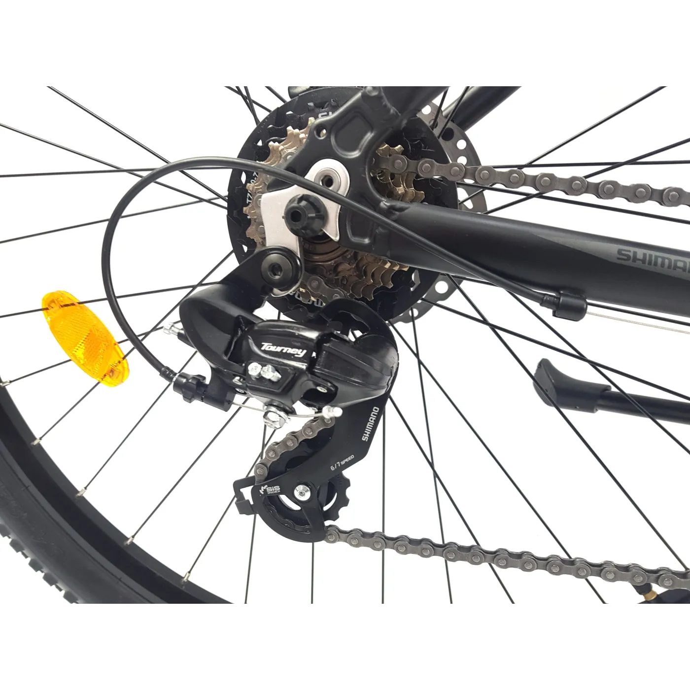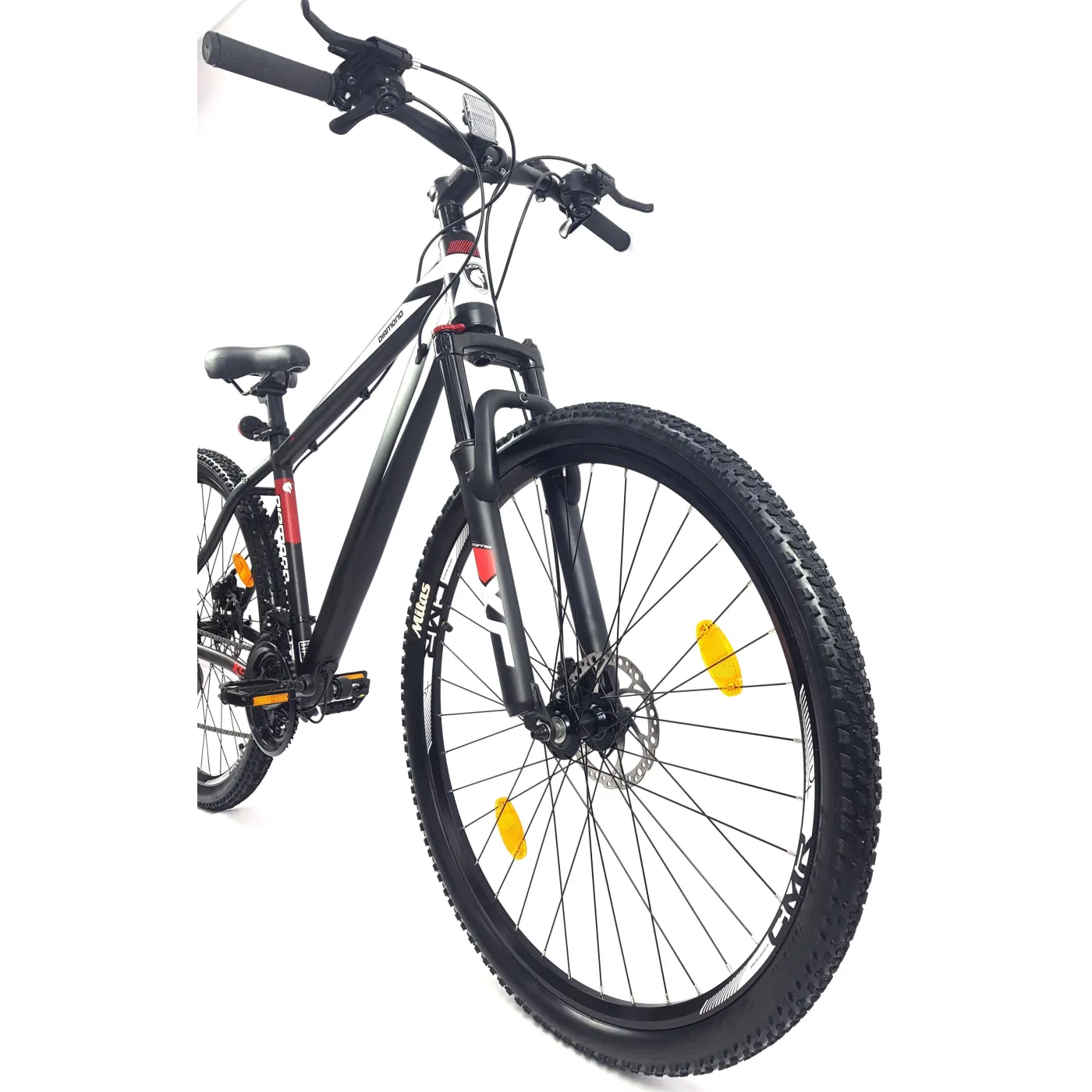 👉 Hamulce tarczowe mechaniczne z przodu i z tyłu gwarantują skuteczne i pewne hamowanie w każdych warunkach. 21-biegowa przerzutka Shimano oraz manetka cynglowa umożliwiają płynne i precyzyjne zmiany biegów, dostosowując się do urozmaiconego terenu. Opony o rozmiarze 29" x 2,10" zapewniają dobrą przyczepność i pewność prowadzenia nawet na trudniejszych trasach.