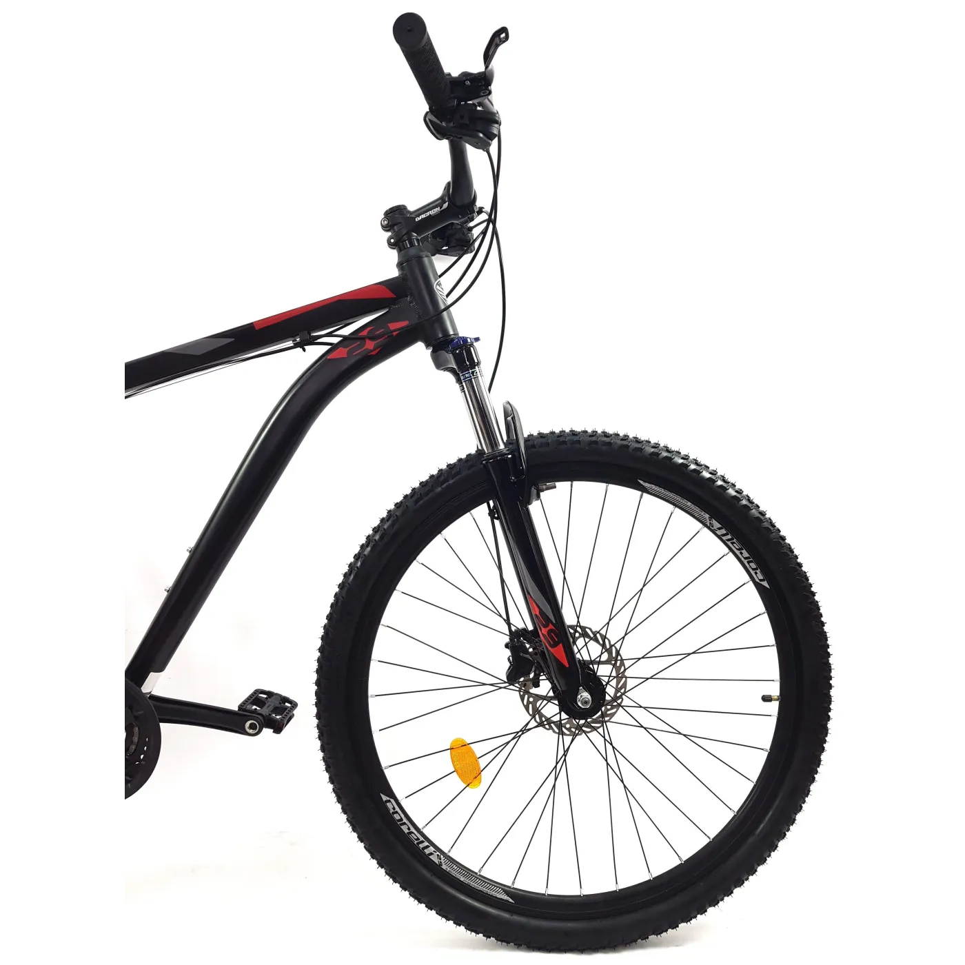 🎨 Całość utrzymana jest w designerskiej czarnej kolorystyce z czerwonymi wstawkami, co nadaje rowerowi nowoczesny wygląd. Dodatkowo, wyposażony jest w dzwonek i odblaski, co zwiększa bezpieczeństwo na drodze.