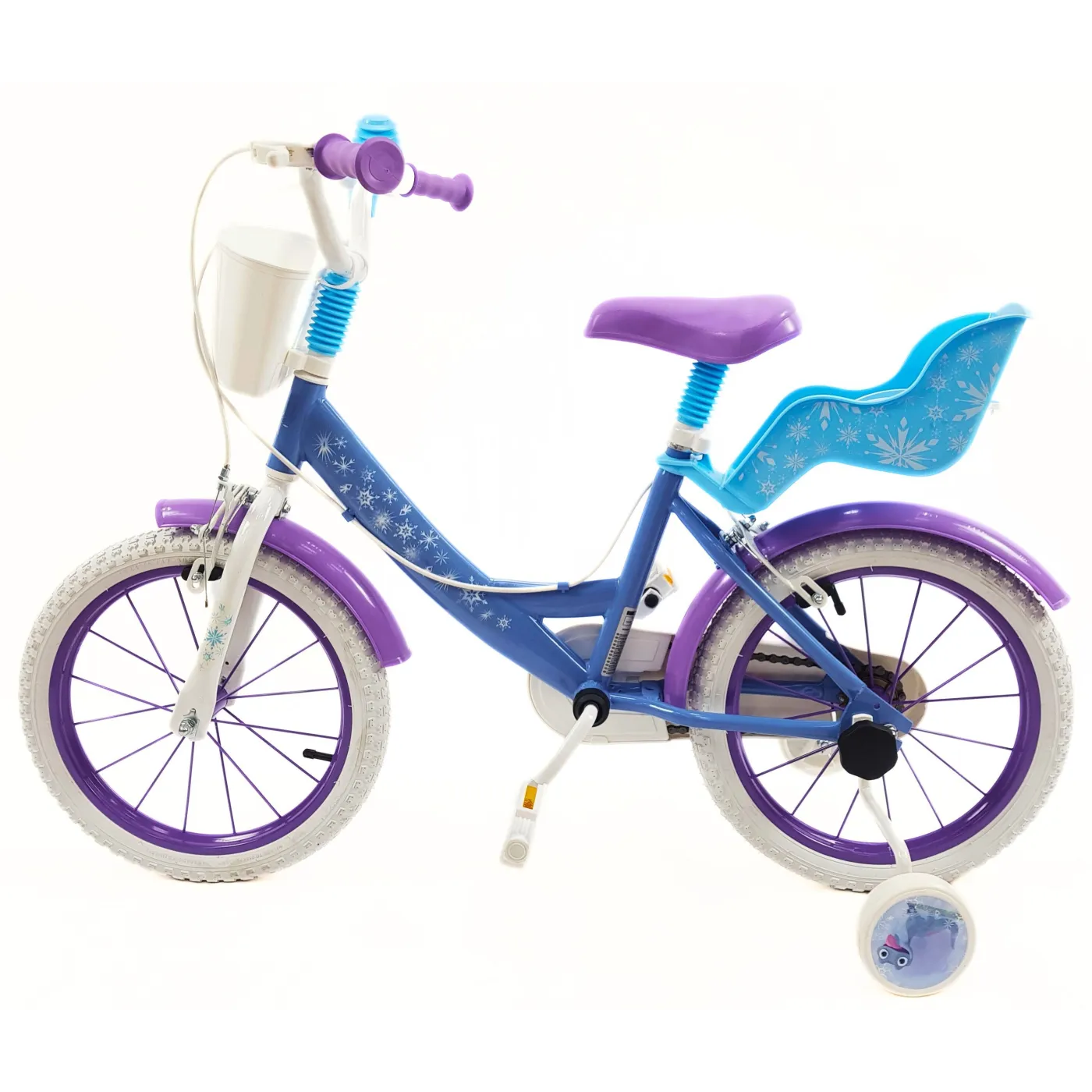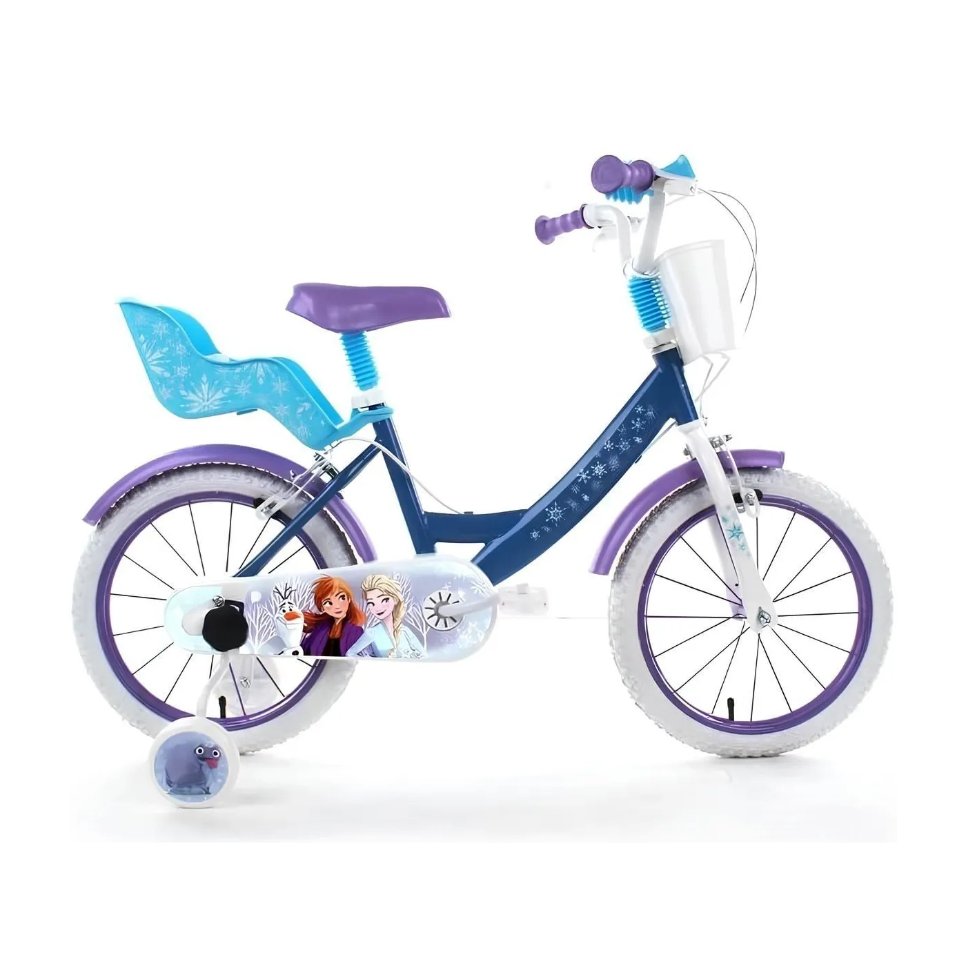 ❄️ Rower ten jest wyposażony w boczne kółka, które pomagają początkującym rowerzystkom utrzymać równowagę i doskonalić umiejętności jazdy. Dodatkowo, błotniki, osłona łańcucha, bagażnik, dzwonek i koszyk sprawiają, że FROZEN to nie tylko środek transportu, ale też fantastyczna zabawka, która umili każdą wyprawę.