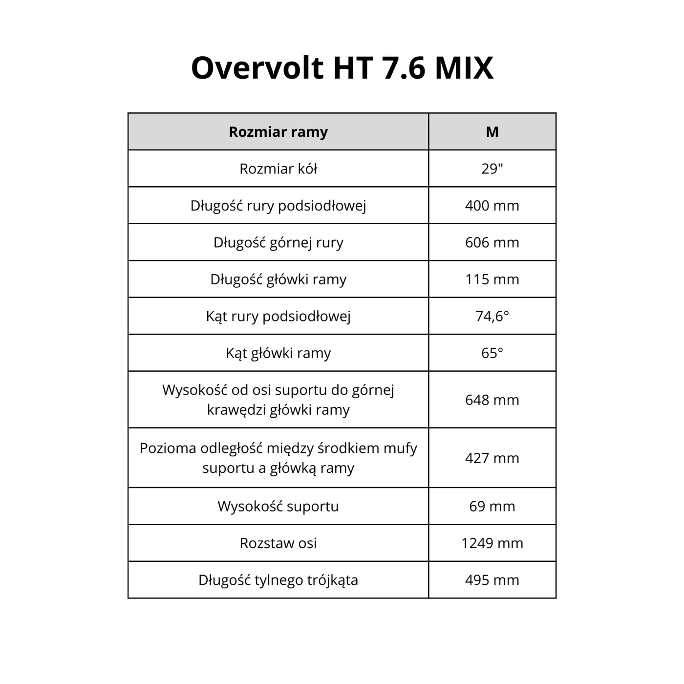 🚲 Koła o średnicy 29 cali oraz opony o szerokości 2,3 cala sprawiają, że Overvolt HT 7.6 MIX radzi sobie zarówno na gładkich ścieżkach, jak i na wymagających trasach górskich.