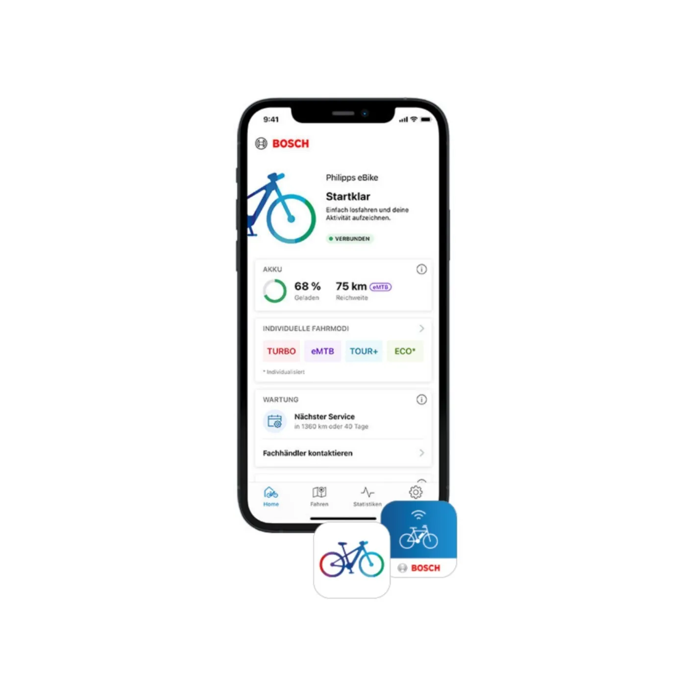 📱🗺️ Aplikacja Bosch Smart System E-Bike Flow umożliwia personalizację wycieczek oraz śledzenie najważniejszych informacji na Smartphonie. Dzięki niej każda przejażdżka staje się jeszcze bardziej emocjonująca i efektywna.