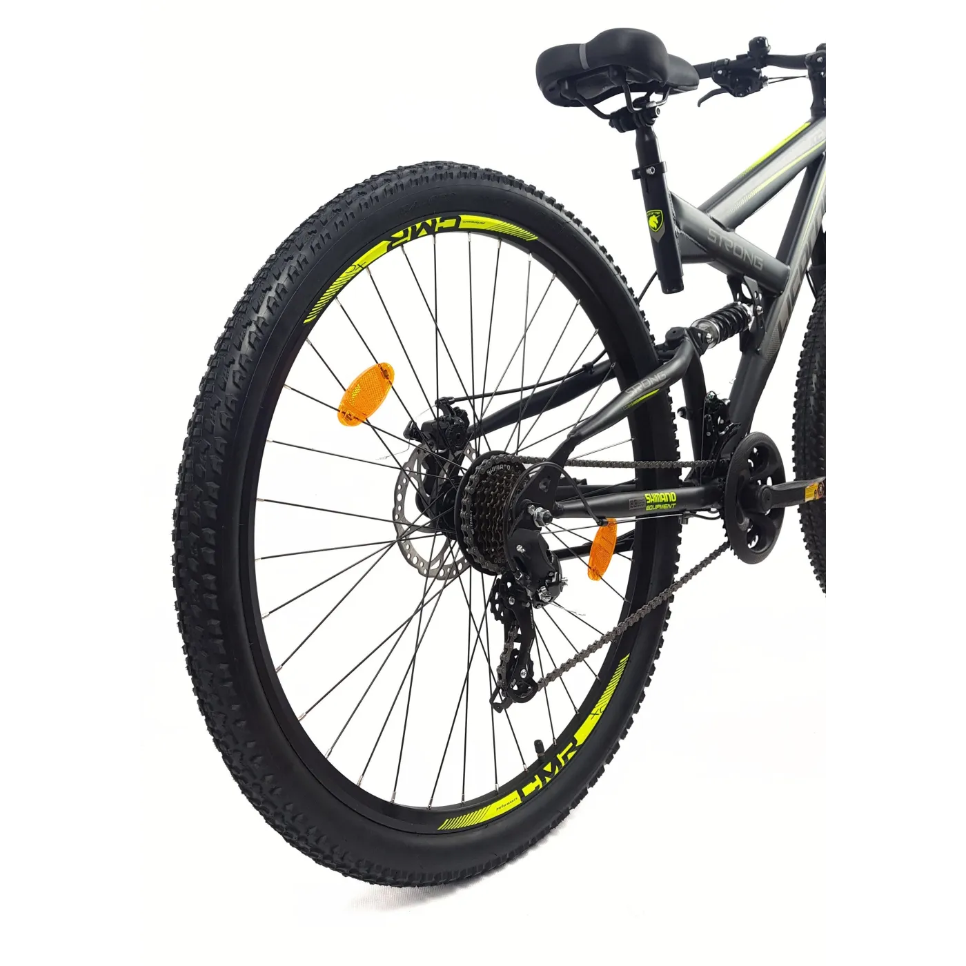 💎 Strong wyposażony jest w stalową ramę, co gwarantuje wytrzymałość i stabilność podczas jazdy po trudnym terenie. Hamulce tarczowe zarówno z przodu, jak i z tyłu, zapewniają skuteczne i bezpieczne hamowanie w każdych warunkach.