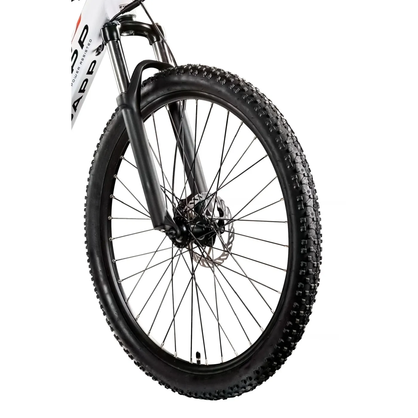 💎 Dzięki kompaktowej ramie z wygiętą górną rurą, rower zapewnia bezpieczną i wygodną pozycję. Komfort podnosi amortyzowany widelec o skoku 80 mm, którego twardość można dostosować do potrzeb rowerzysty.