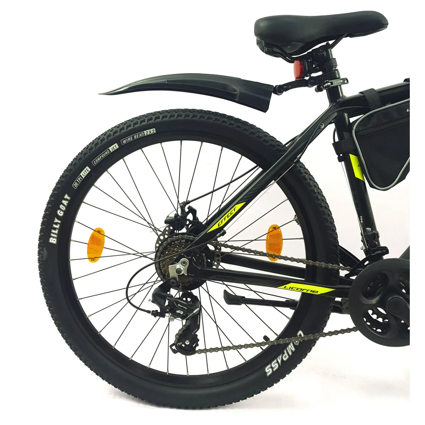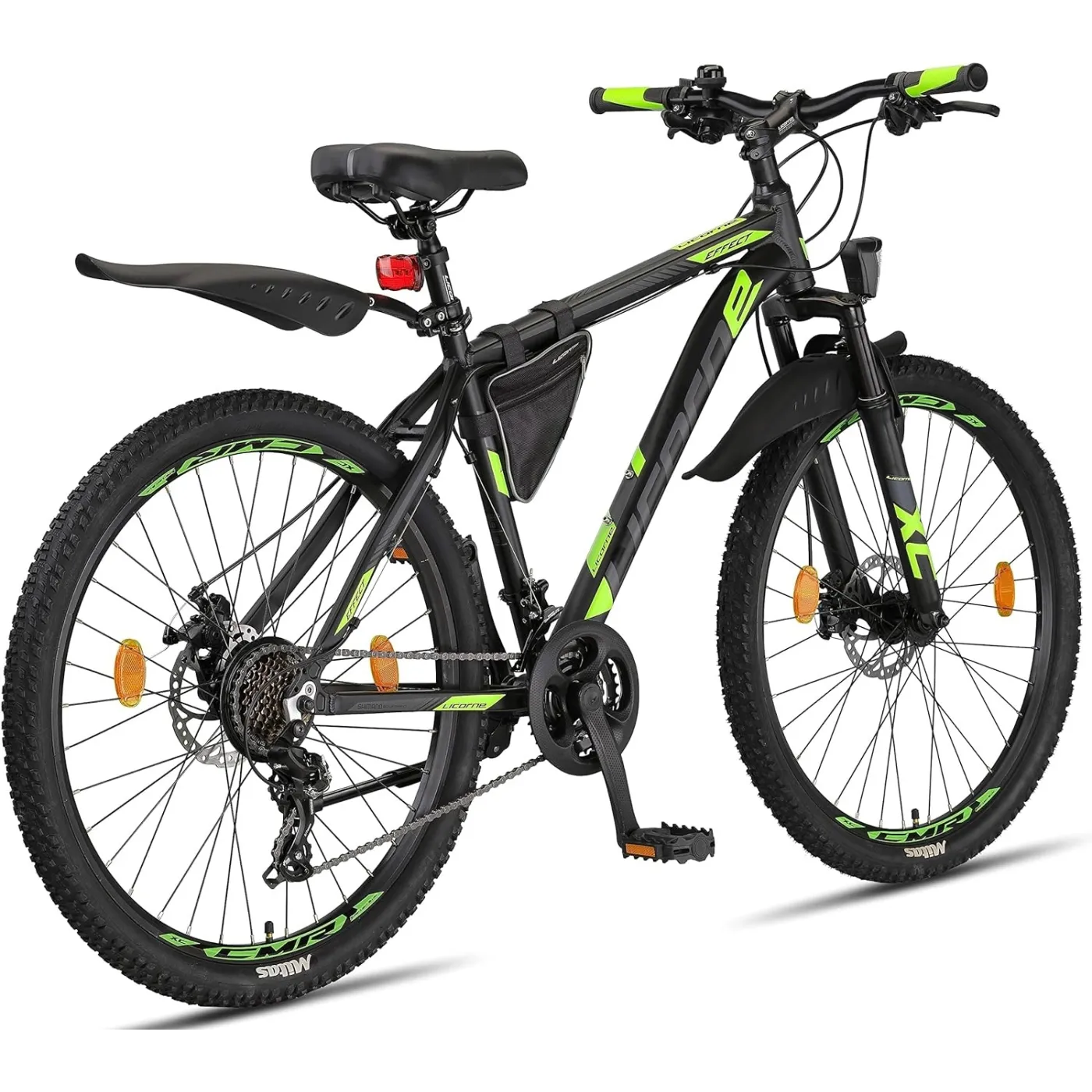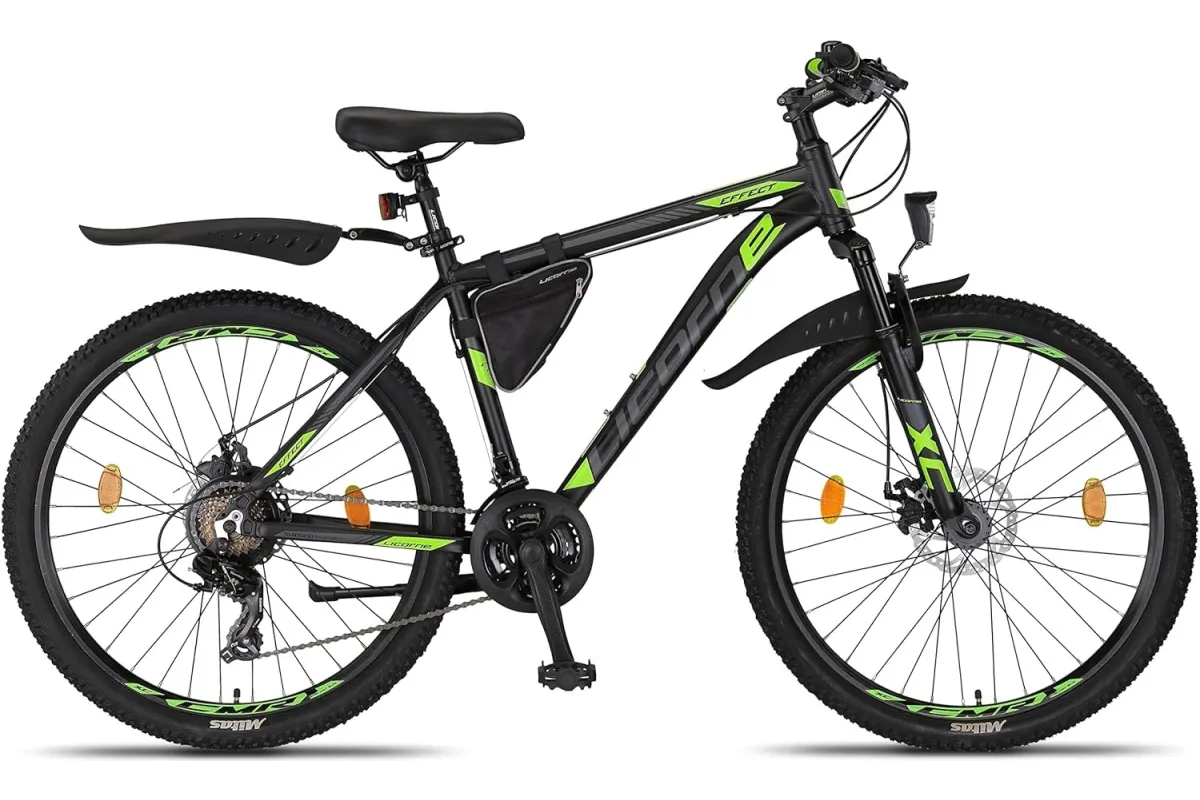 👉 Rower wyposażony jest w opony o rozmiarze 26" x 2,10", które zapewniają stabilność i komfort jazdy. Czarna kolorystyka z zielonymi wstawkami nadaje rowerowi nowoczesny i stylowy wygląd, który z pewnością przyciągnie uwagę innych osób.