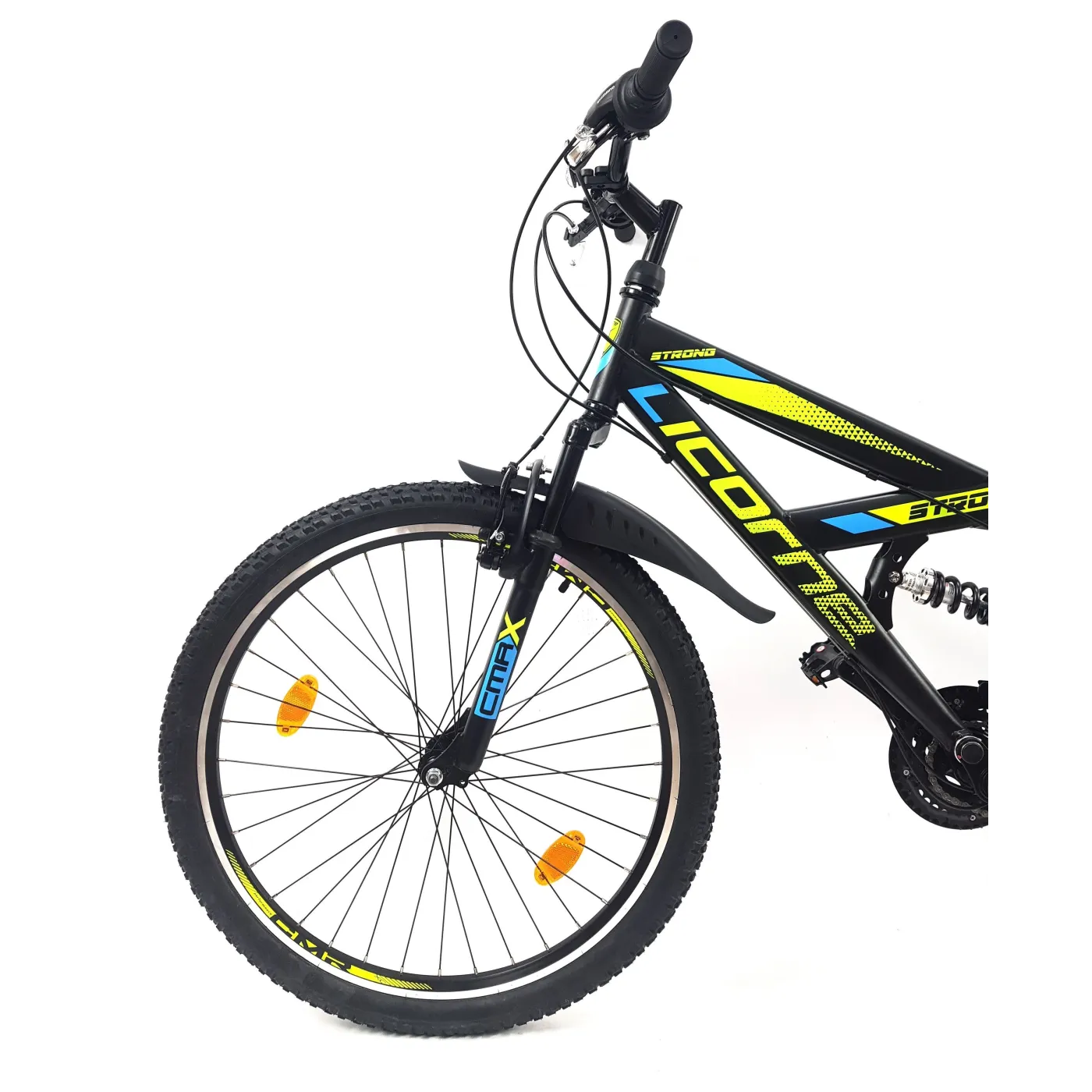 👉 Amortyzatory zarówno z przodu, jak i z tyłu roweru absorbują wstrząsy i nierówności terenu, co przekłada się na wygodniejszą jazdę i mniejsze obciążenie dla ciała. Opony 26" x 2,10" zapewniają doskonałą przyczepność i stabilność na różnych rodzajach podłoża.