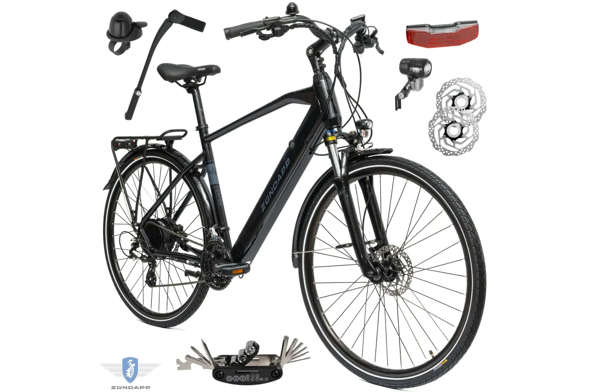 💡 Jako rower na co dzień Zündapp Z810 jest już doskonale wyposażony. Oświetlenie AXA z przodu i z tyłu sprawia, że e-rower nadaje się do ruchu drogowego. Błotniki chronią przed brudem drogowym, a osłona łańcucha zapobiega zaplątaniu się odzieży w łańcuch.