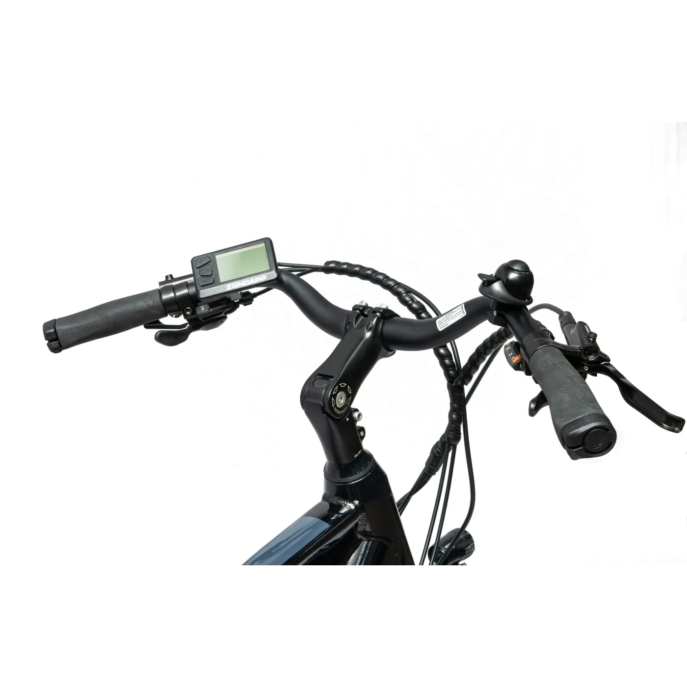 🔋 Mocny silnik na tylnym kole zapewnia delikatne podparcie dzięki mocy 250 watów. Poziomy wsparcia są wybierane za pomocą przejrzystego wyświetlacza LCD Ananda D13, który zapewnia również pomoc w pchaniu i najważniejsze dane dotyczące jazdy. Ponieważ wyświetlacz znajduje się tuż obok lewego uchwytu, możesz go obsługiwać bez konieczności zdejmowania ręki z kierownicy. Dodatkowo, bateria o pojemności 417,6Wh pozwoli Ci pokonać nawet do 125 km!