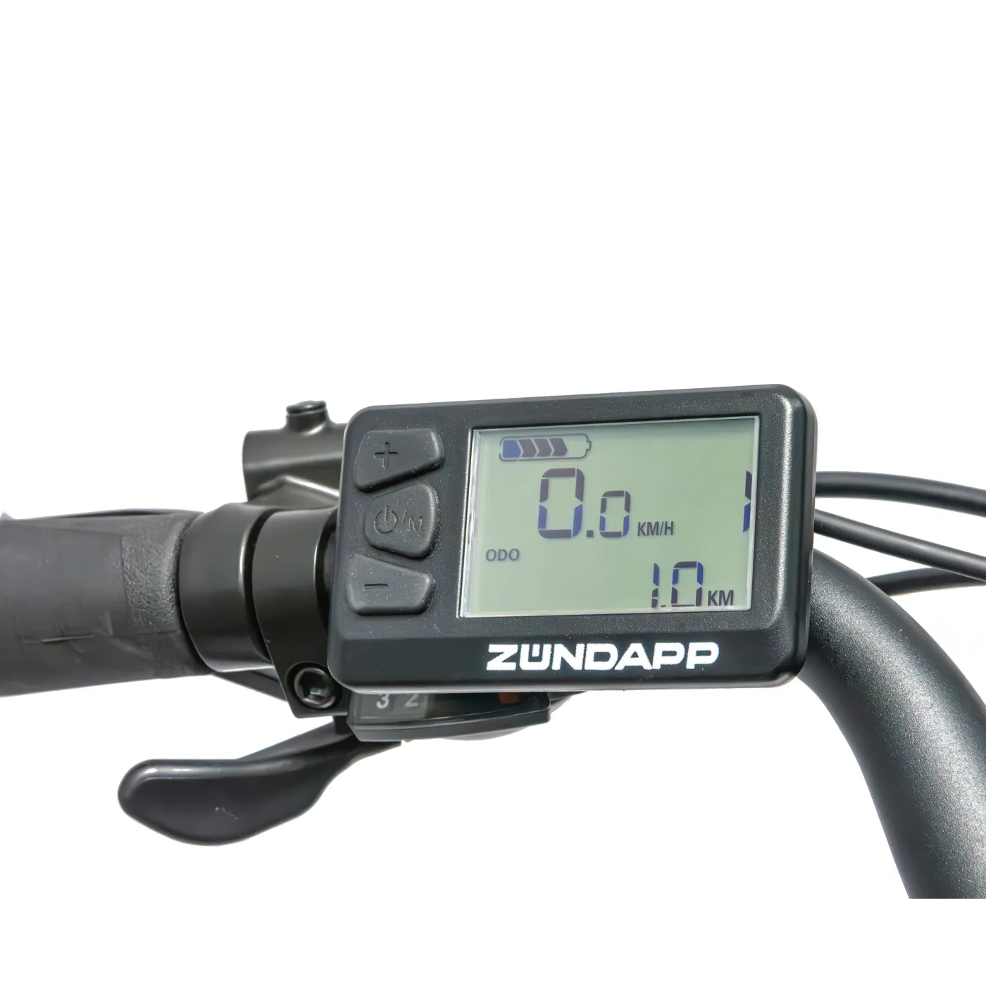 👉🏻 Zündapp Z810 jest hamowany hydraulicznymi hamulcami tarczowymi Promax Lucid. Hamulce tarczowe mają tę zaletę, że nie są pod wrażeniem ich skuteczności hamowania przez wilgoć lub brud. Dzięki temu są niezawodnym partnerem nawet podczas jazdy w terenie.