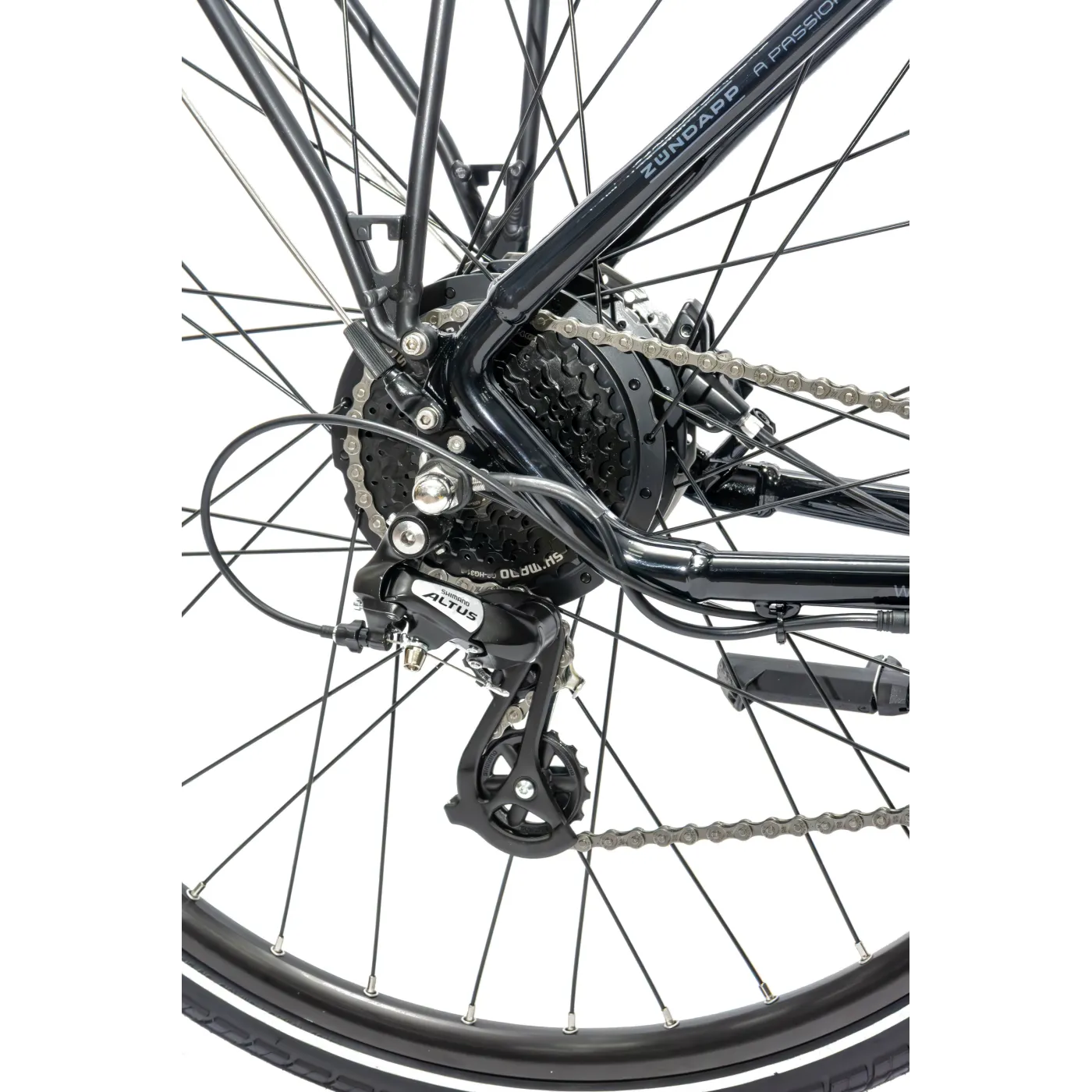 👌🏻 Dodatkowo dostępne są 24 biegi, z których wysokim zakresem bez problemu poradzisz sobie na każdym podjeździe. Zainstalowana jest przerzutka przednia Shimano i tylna Shimano Altus. Komponenty z montażu Altus zapewniają precyzyjną, płynną zmianę biegów z pełną kontrolą nad rowerem i dużą zwrotnością. W połączeniu dźwignia zmiany biegów SL-M315 Rapidfire Plus zapewnia płynną i precyzyjną zmianę biegów. Mechanizm korbowy Zündapp i kaseta Shimano HG31 z technologią HyperGlide zapewniającą płynny poślizg łańcucha uzupełniają napęd.