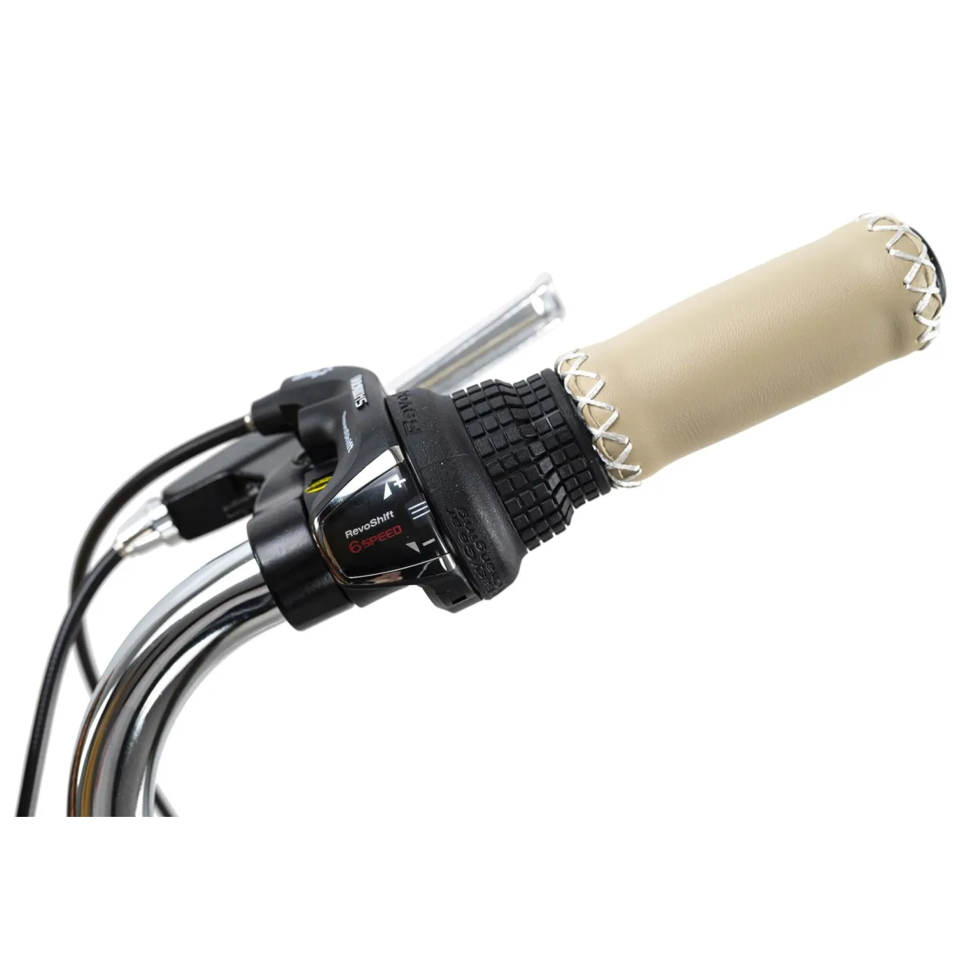 ✔️ Wyposażony w hamulce typu V-brake, rower zapewnia skuteczne i bezpieczne hamowanie w każdych warunkach. Dzięki 6-biegowej przerzutce Shimano oraz manetce obrotowej RevoShift, jest łatwy w obsłudze i pozwala dostosować tempo jazdy do indywidualnych preferencji użytkownika.
