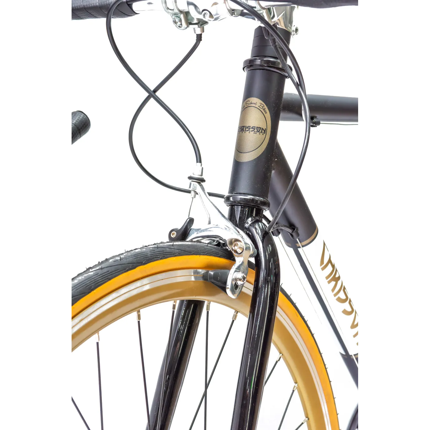 👍 Kolor czarny mat z biało-złotymi wstawkami podkreśla elegancki i retro styl roweru, co sprawia, że będzie on doskonałym wyborem dla osób ceniących klasyczne rozwiązania i design.
