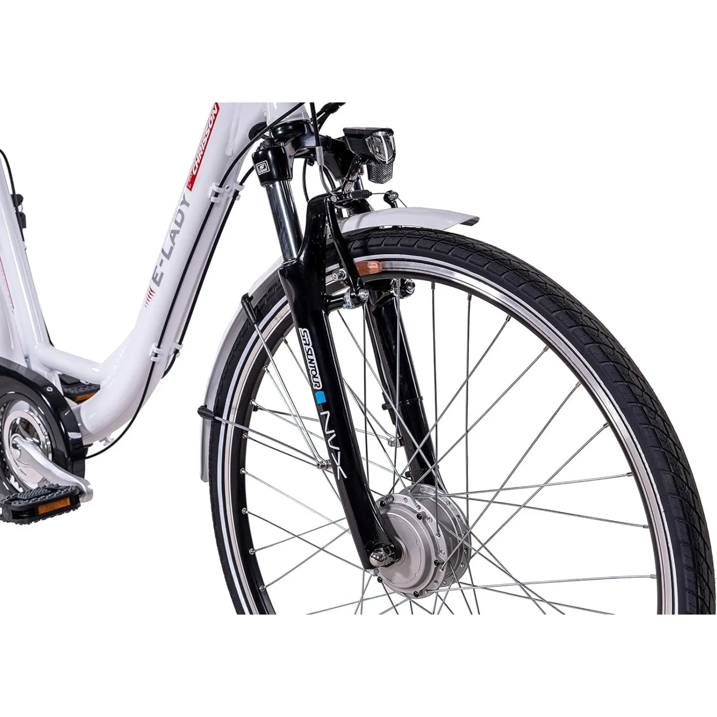 💎 Chrisson E-lady z ramą wykonaną z aluminium to wygodny i praktyczny środek transportu w miejskiej dżungli. Dzięki hamulcom typu V-brake, jazda jest bezpieczna i kontrolowana, a przerzutka 8-biegowa Shimano Altus oraz manetka obrotowa Revoshift sprawiają, że zmiana tempa jazdy jest płynna i komfortowa.