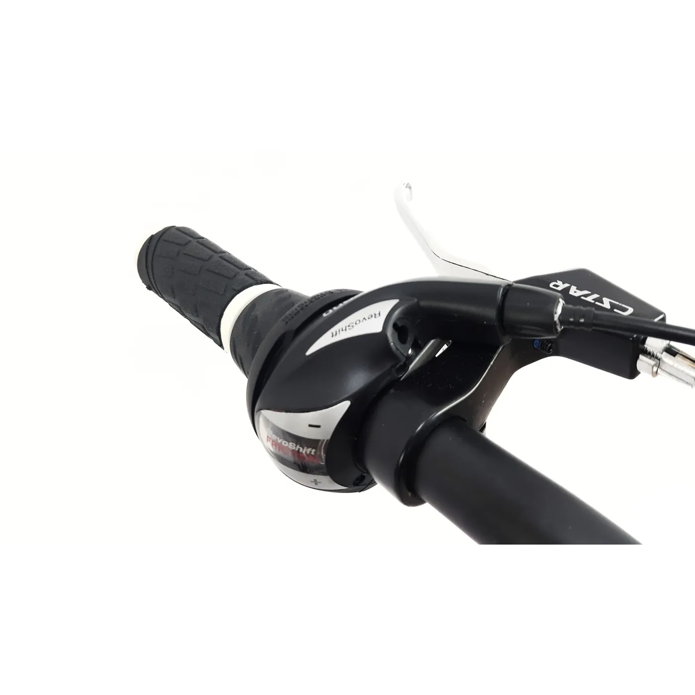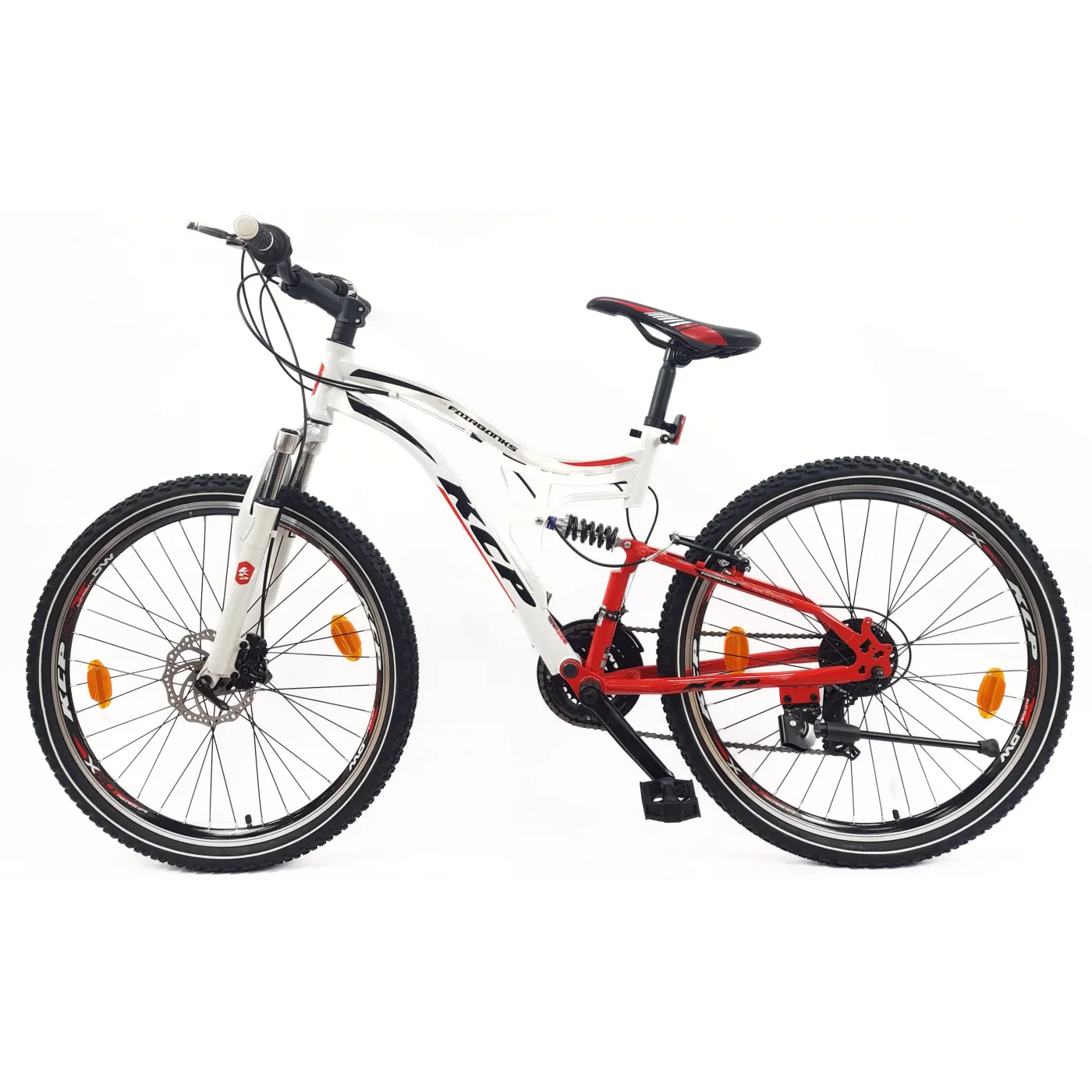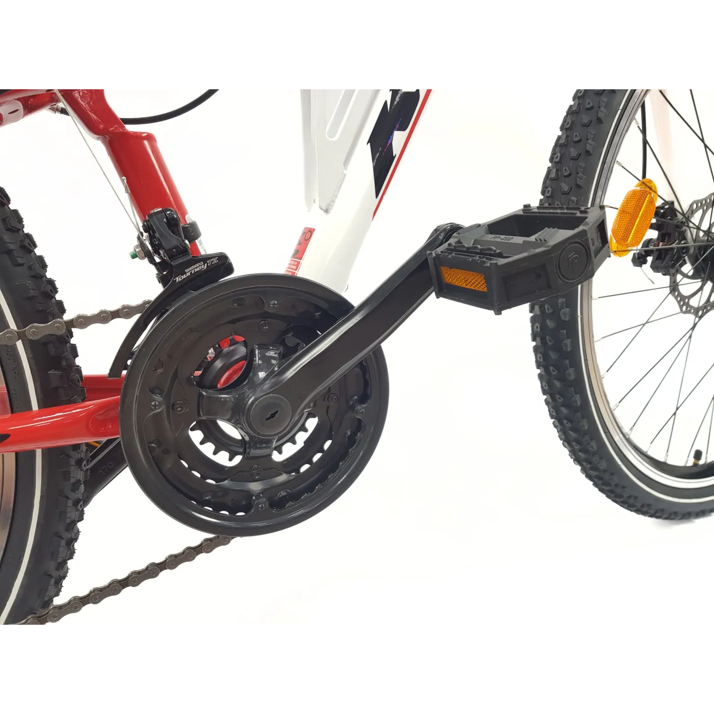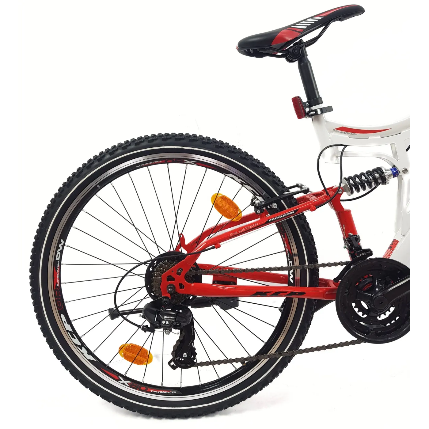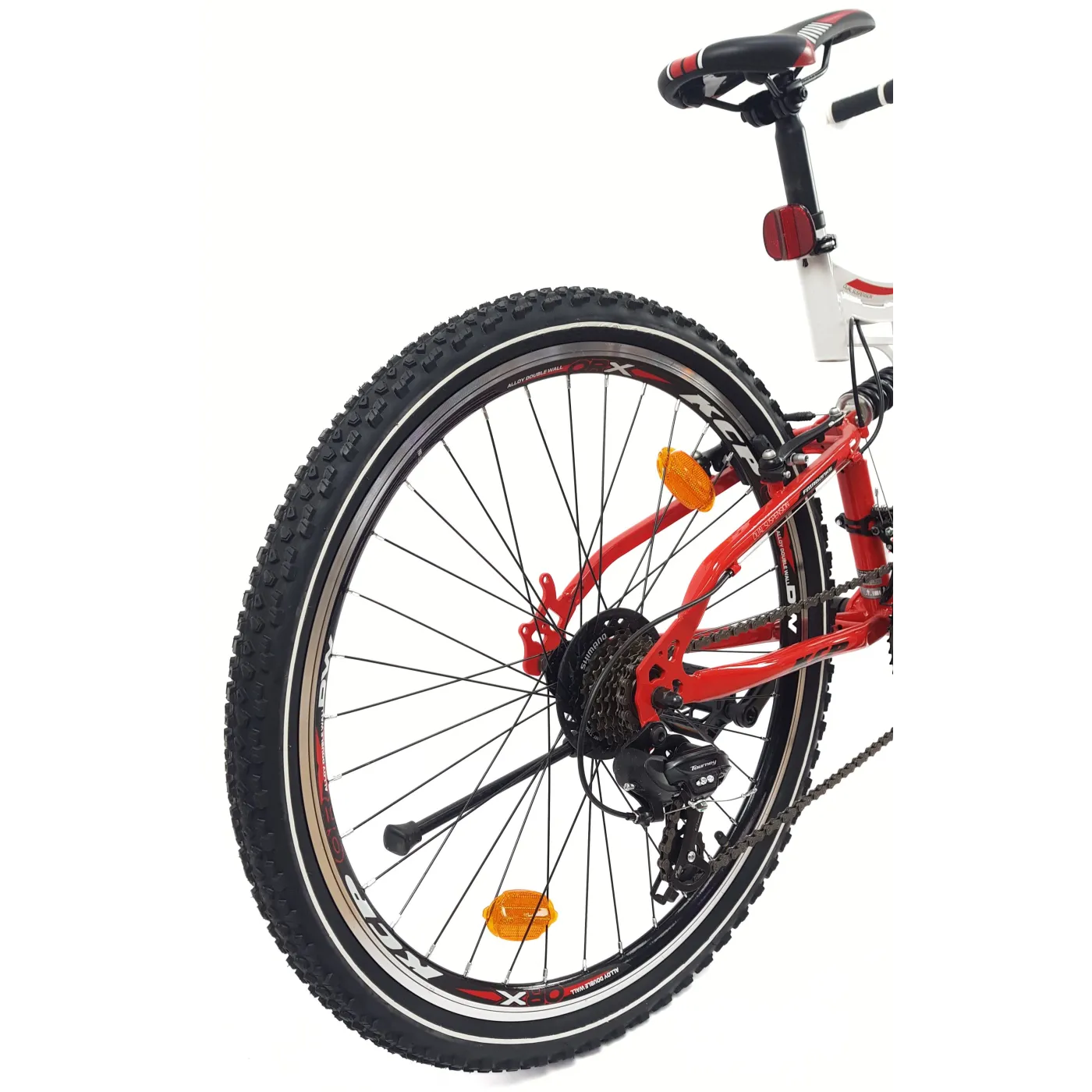⚙️ Dzięki 21-biegowej przerzutce Shimano i manetce obrotowej Revoshift, rower umożliwia sprawne zmienianie przełożeń, co pozwala dopasować się do różnorodnych warunków i pokonywać zarówno strome podjazdy, jak i szybkie zjazdy. Pełna amortyzacja z przodu i z tyłu, sprawia, że jazda jest komfortowa nawet po nierównych i kamienistych ścieżkach.