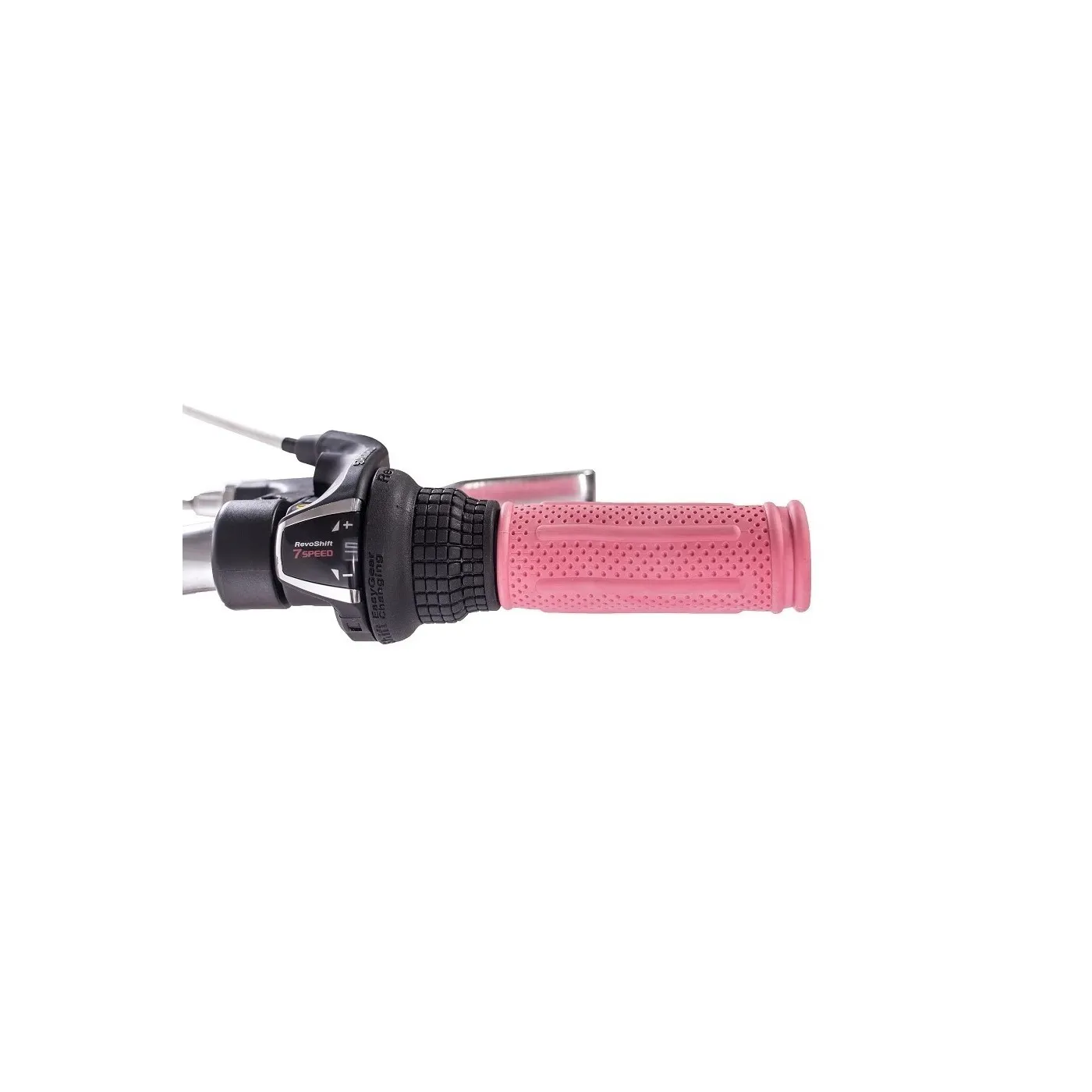 🔧 Hamulce V-Brake zapewniają skuteczne i bezpieczne zatrzymywanie roweru, nawet podczas dynamicznej jazdy. Bezpieczeństwo jest priorytetem, dlatego rower wyposażono także w 7-biegową przerzutkę Shimano oraz manetkę obrotową RevoShift, która umożliwia płynne i precyzyjne zmiany biegów, bez konieczności zdejmowania rąk z kierownicy.