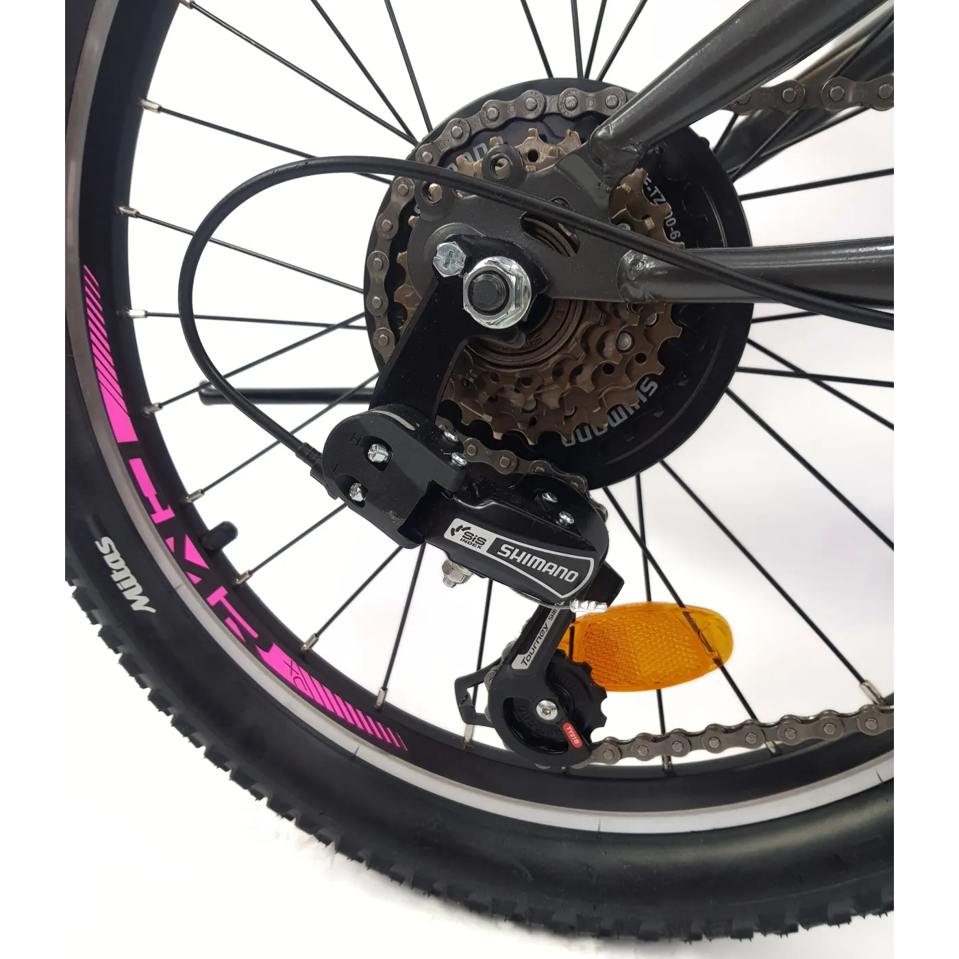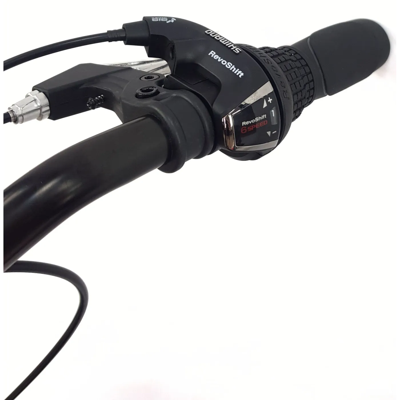 🔧 Wyposażony w hamulce szczękowe v-brake zarówno z przodu, jak i z tyłu, zapewnia bezpieczne i skuteczne hamowanie. Dzięki 18-biegowej przerzutce Shimano oraz manetce obrotowej Shimano RevoShift, młodzi kolarze mogą płynnie zmieniać biegi, dostosowując się do różnych terenów.