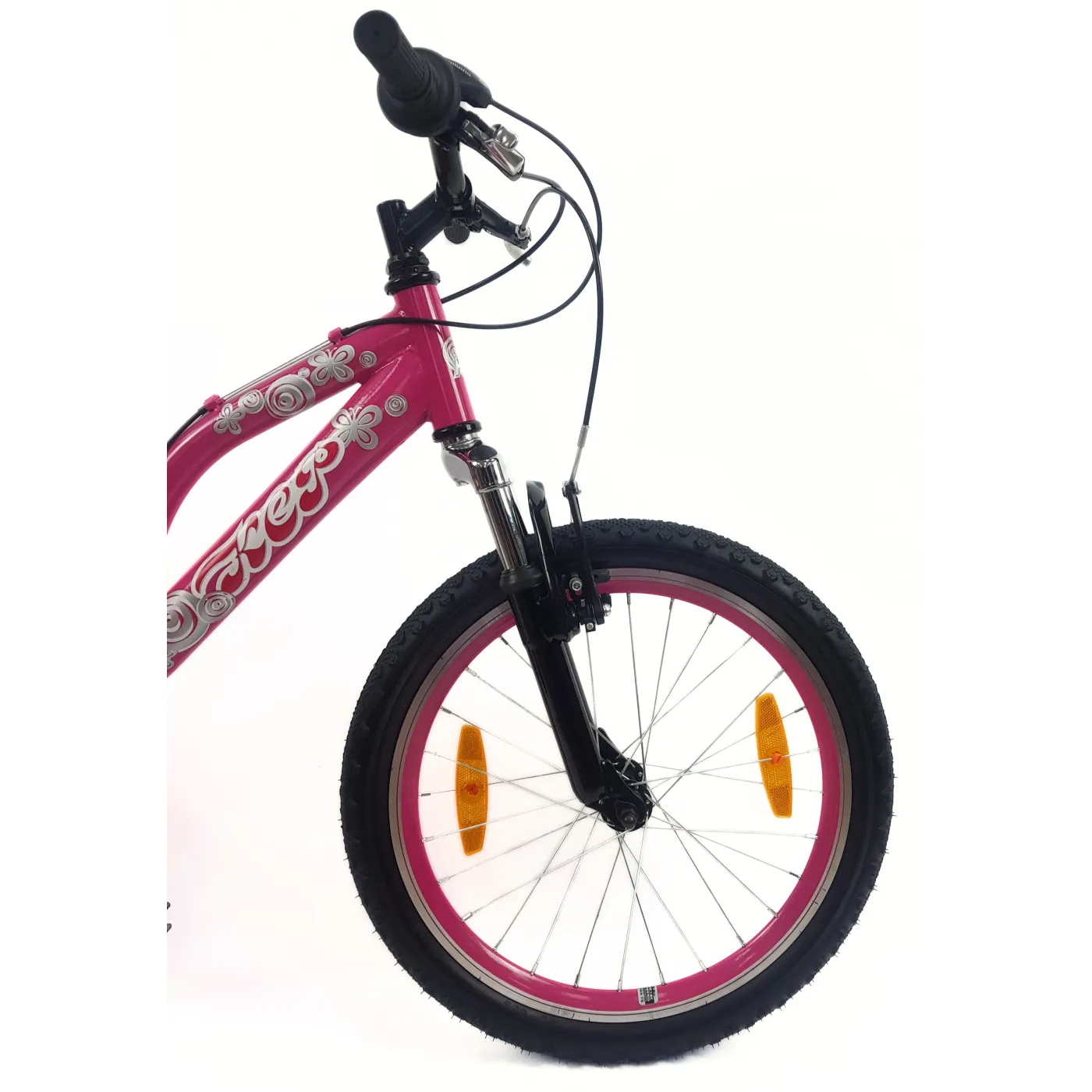 👌 Dzięki nowoczesnemu malowaniu w różowym kolorze z białymi wstawkami, KCP Jett prezentuje się bardzo atrakcyjnie dla oka. Niska waga roweru sprawia, że dzieci łatwo mogą manewrować nim w dowolnym kierunku. Dodatkowo, obecność stopki ułatwia parkowanie i stabilne postawienie roweru.