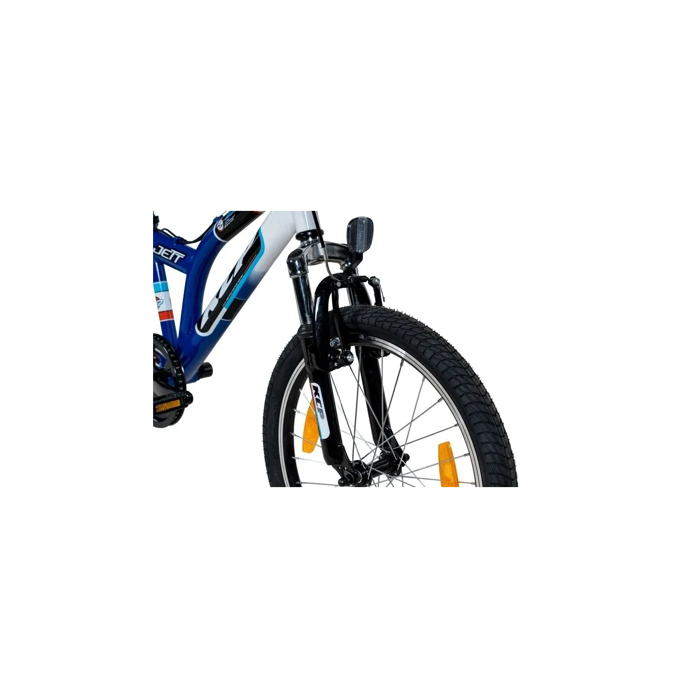 👌 Dzięki nowoczesnemu malowaniu w niebiesko-białym kolorze z czarnymi wstawkami, KCP Jett prezentuje się bardzo atrakcyjnie dla oka. Niska waga roweru sprawia, że dzieci łatwo mogą manewrować nim w dowolnym kierunku. Dodatkowo, obecność stopki ułatwia parkowanie i stabilne postawienie roweru.