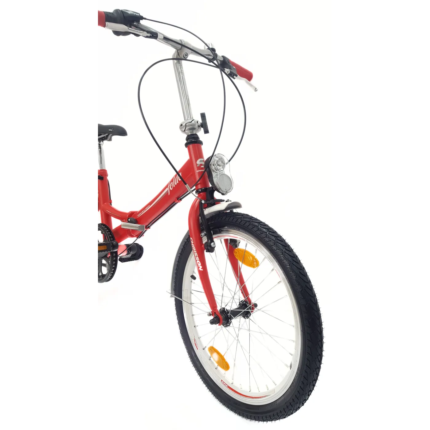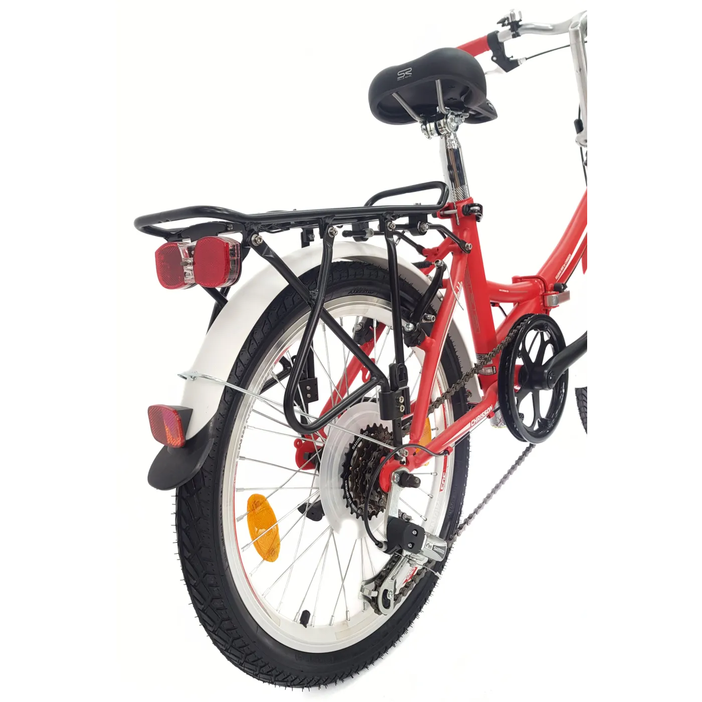 🎨 Dodatkowe elementy wyposażenia, takie jak dzwonek, światła, dynamo i bagażnik, sprawiają że rower składany jest kompletnym środkiem transportu, który spełnia wszystkie potrzeby użytkownika. Po złożeniu, kompaktowe wymiary 85 x 60 x 40 cm sprawiają że można go łatwo transportować np. w bagażniku samochodowym.