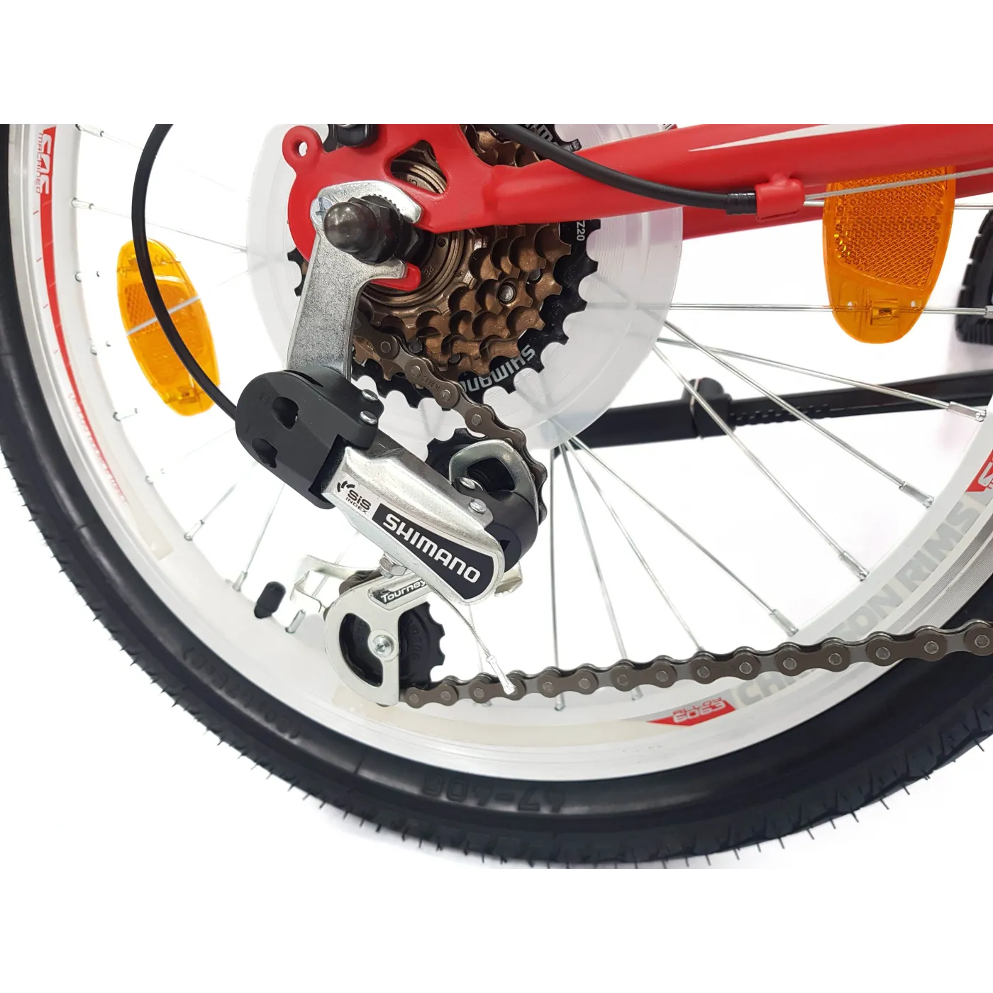 💪 Hamulce V-Brake gwarantują bezpieczne i skuteczne hamowanie, co jest szczególnie istotne podczas jazdy w zatłoczonych miejscach lub na zjazdach. 6-biegowa przerzutka Shimano zapewnia płynną zmianę biegów, co pozwala dostosować rower do zmieniającego się terenu.