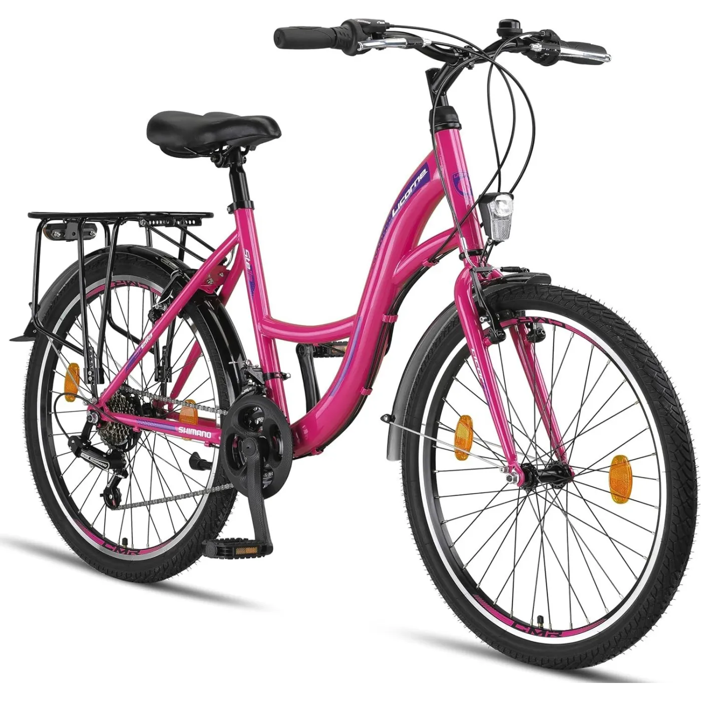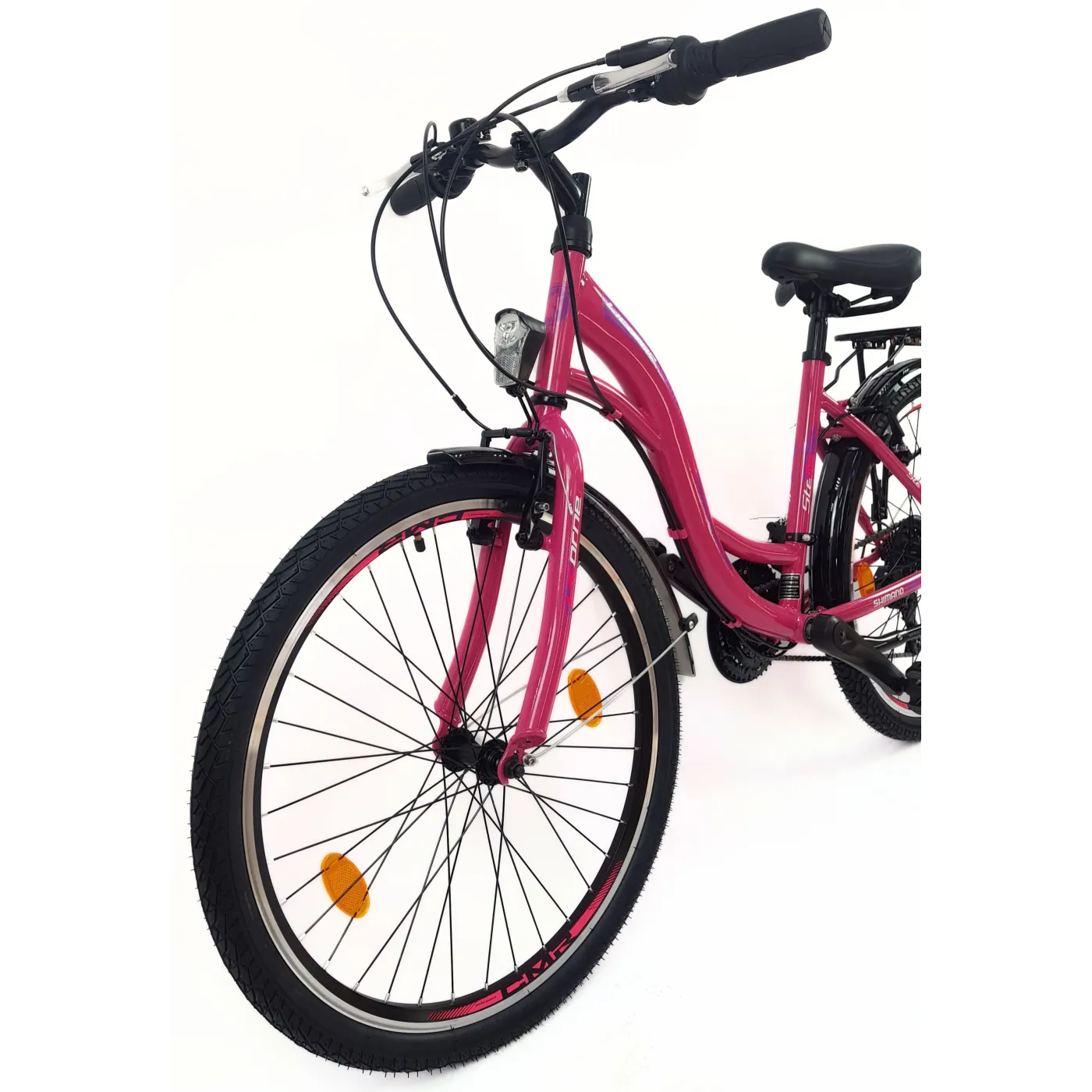 🚴♀️ Dzięki kołom 24" i oponom o szerokości 1,75", rower zapewnia stabilną i komfortową jazdę, a dodatkowe wyposażenie takie jak bagażnik, osblaski, dzwonek, oświetlenie, błotniki i stopka sprawiają, że jazda staje się jeszcze bardziej przyjemna i bezpieczna.