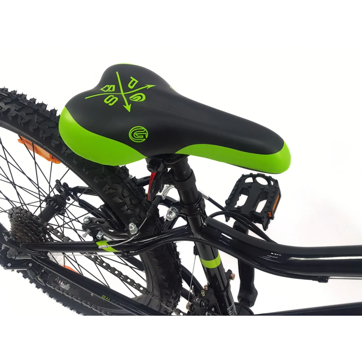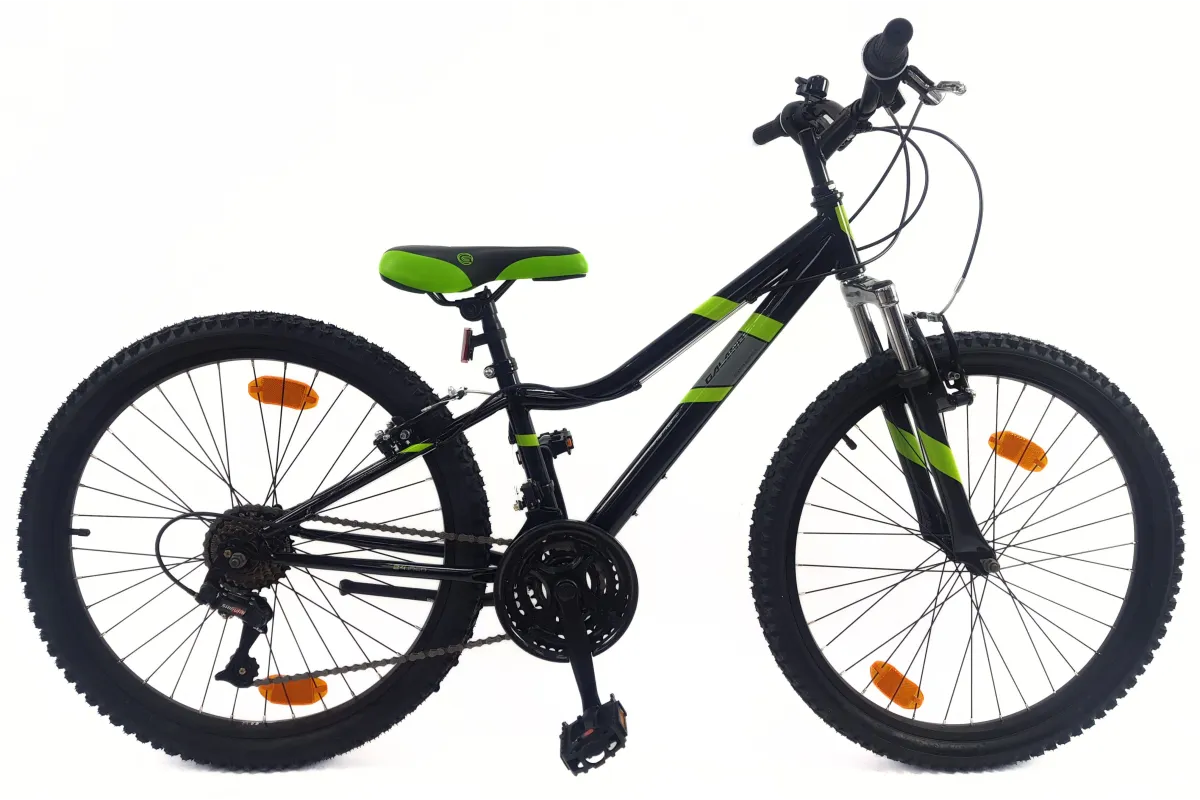 👉 Rower wyposażony jest w przerzutki Saiguan i Shimano, zapewniające precyzyjną zmianę biegów i płynne przełączanie między nimi. 21-biegowa przekładnia umożliwia dostosowanie trudności jazdy do indywidualnych preferencji i umiejętności dziecka. Dodatkowo, rower posiada manetkę obrotową Microshift, ułatwiającą zmianę biegów podczas jazdy.