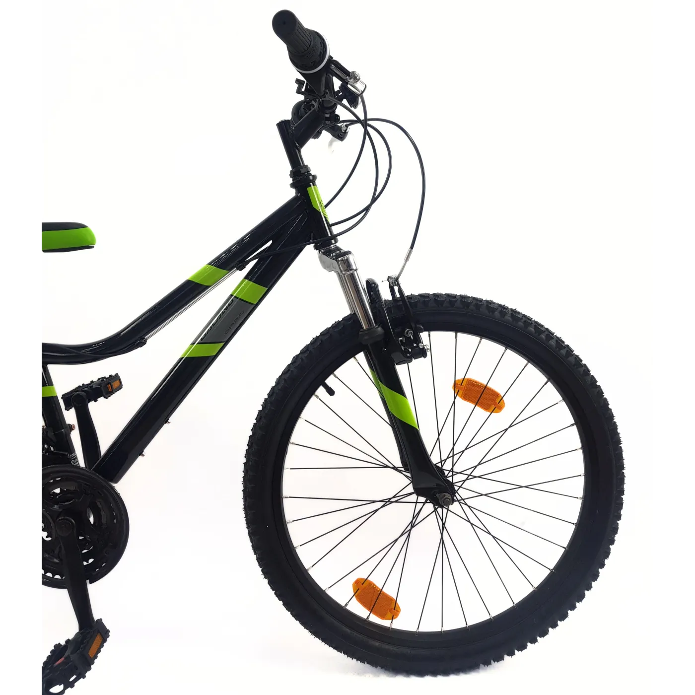 ✔️ Opony 24" x 2,10" oferują wysoką przyczepność, a amortyzowany widelec zapewnia lepszą absorpcję wstrząsów podczas jazdy po nierównym terenie, co przekłada się na wygodniejszą i stabilniejszą jazdę.