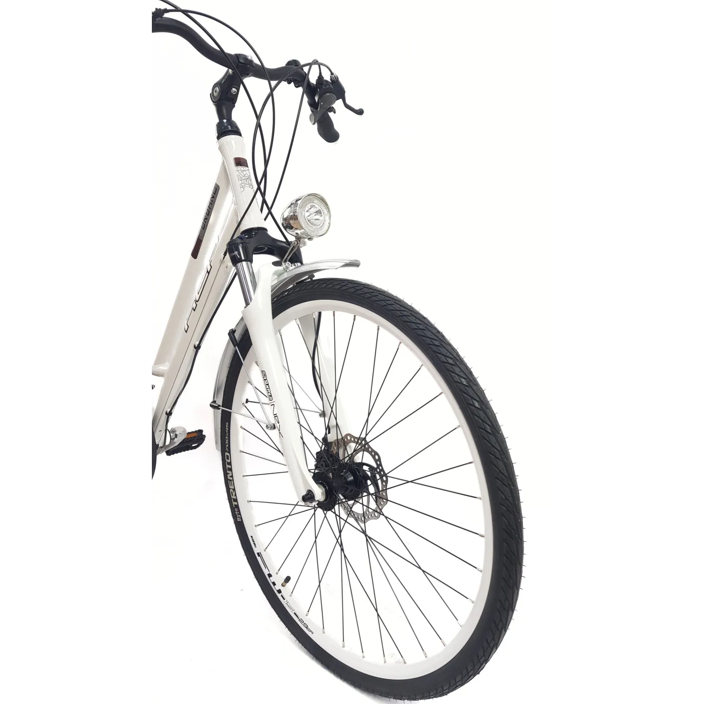 🔧 Amortyzowany widelec sprawia, że ten model doskonale radzi sobie z nierównościami terenu, absorbując wstrząsy i zapewniając płynną jazdę nawet po wyboistych drogach. Posiada także bagażnik, który umożliwia przewożenie drobnych rzeczy w podróży, oraz dzwonek i światła, co zwiększa bezpieczeństwo jazdy po zmroku.