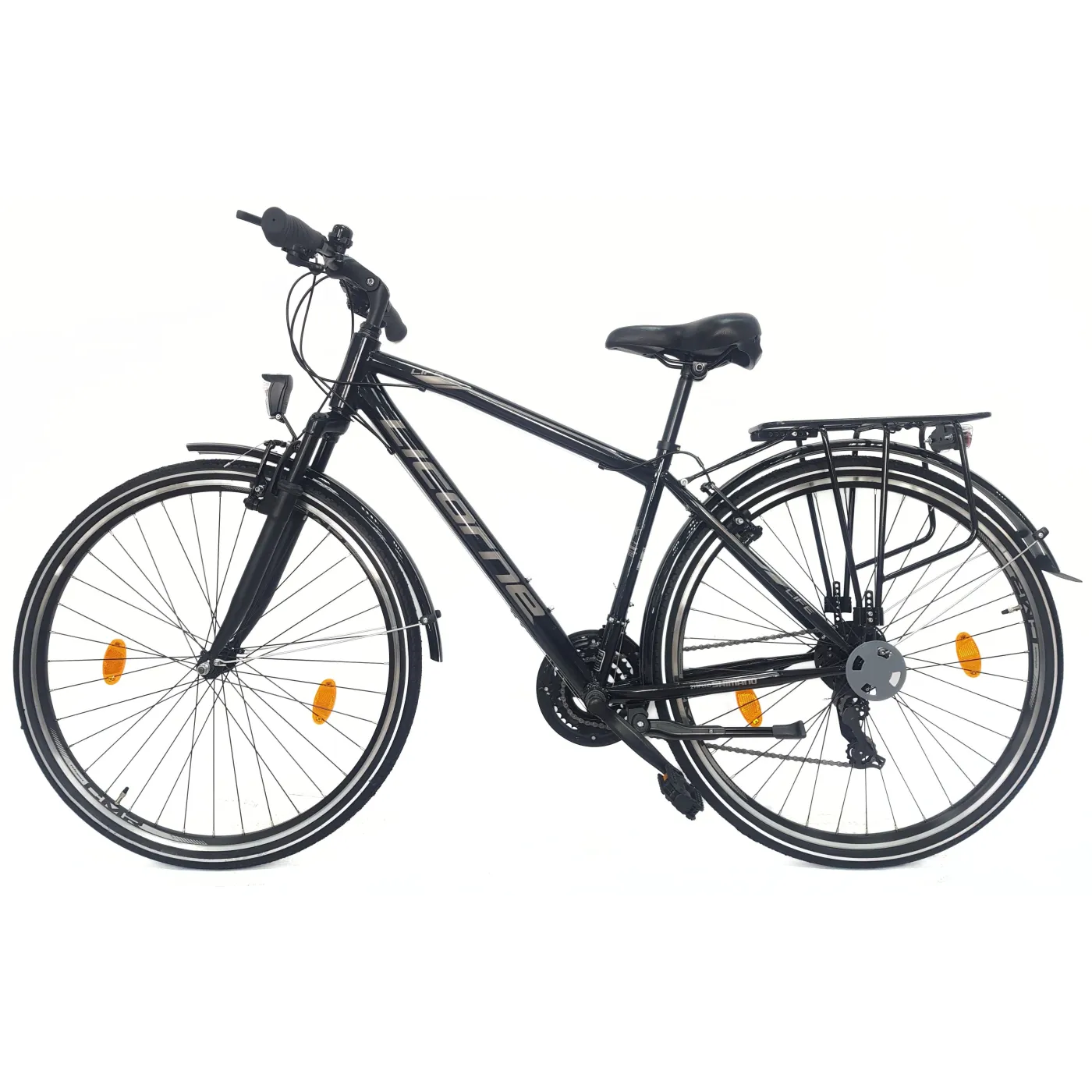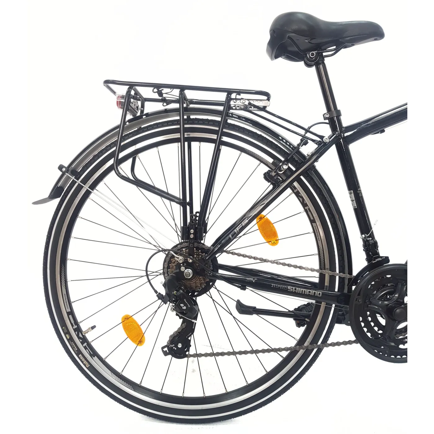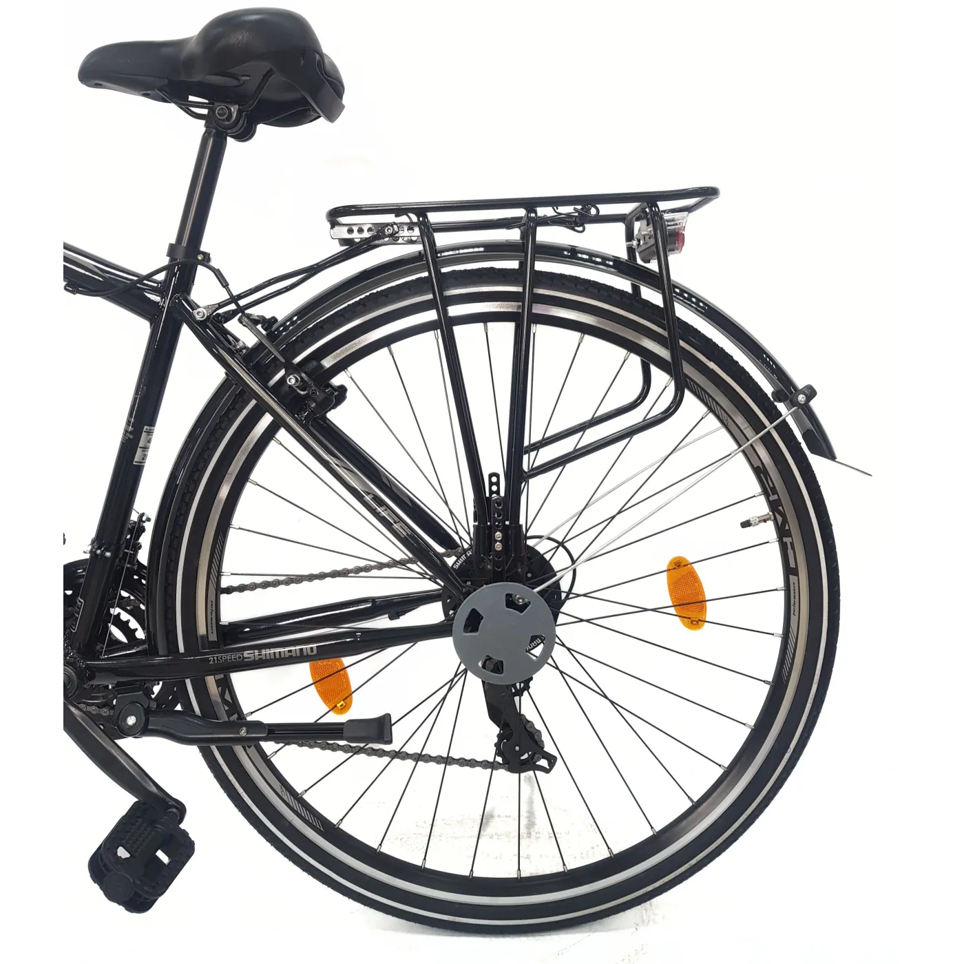 👌 Opony w rozmiarze 28" x 1,5" zapewniają stabilność i doskonałą przyczepność zarówno na suchym, jak i mokrym asfalcie. Amortyzowany widelec absorbujący wstrząsy pomaga zniwelować nierówności terenu, co znacznie zwiększa komfort jazdy. Dodatkowo, bagażnik umożliwia przewożenie potrzebnych rzeczy w podróży, a dzwonek oraz światła zwiększają Twoje bezpieczeństwo na drodze.