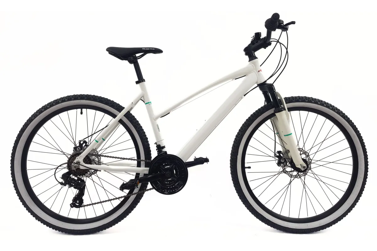 👌 Opony w rozmiarze 26" x 2,10" zapewniają doskonałą przyczepność i stabilność na różnorodnych nawierzchniach, a amortyzowany widelec absorbujący wstrząsy gwarantuje komfort jazdy nawet po nierównym terenie. Model ten dostępny jest w eleganckim białym, matowym kolorze, który nadaje mu nowoczesny i stylowy wygląd.