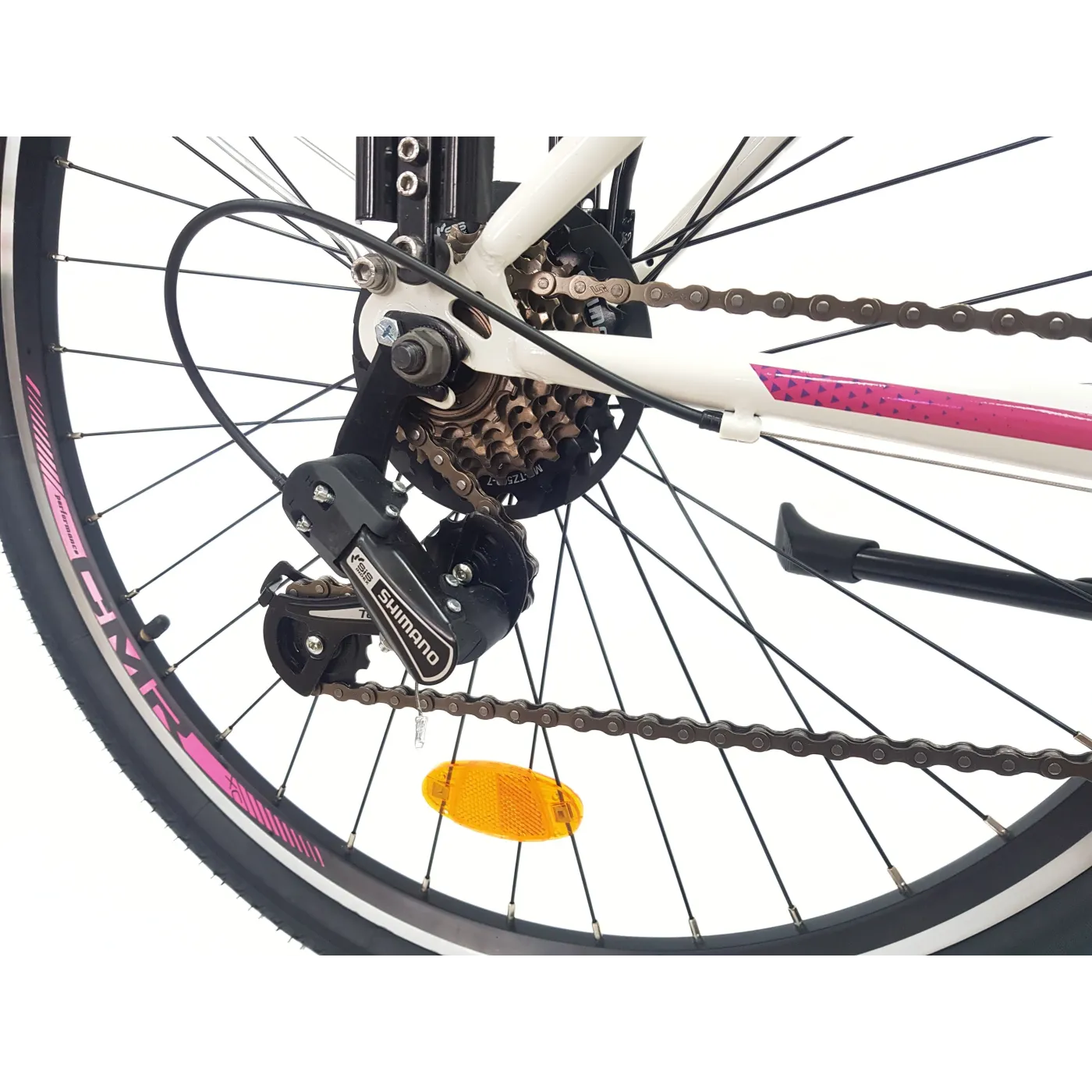 ✔️ Hamulce V-Brake, które zostały zamontowane w tym modelu, zapewniają skuteczną i szybką kontrolę nad prędkością. Dzięki nim jazda jest bezpieczna, a użytkownik może bez obaw poruszać się po ruchliwych ulicach. 21-biegowa przerzutka Shimano oraz manetki obrotowe Revoshift pozwalają na łatwe i płynne zmiany biegów, co umożliwia dostosowanie jazdy do warunków drogowych.