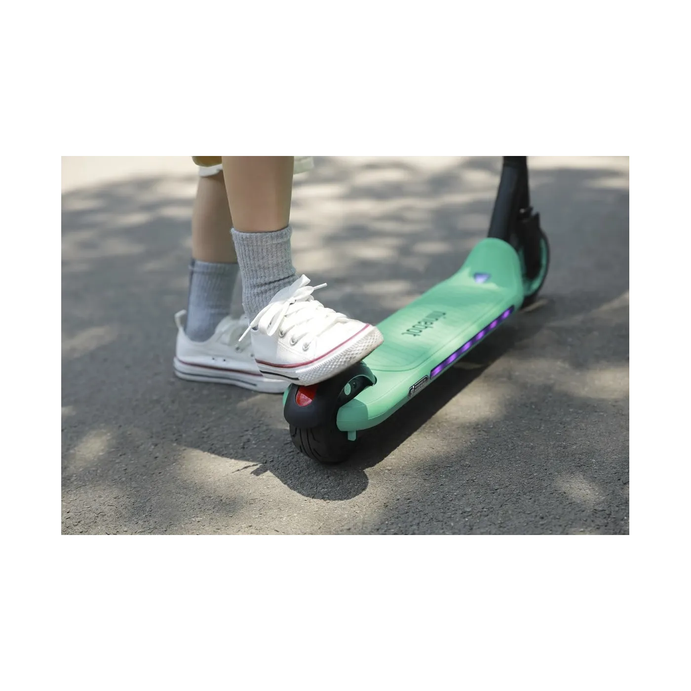 🛴 Ninebot Zing A6 to idealna propozycja dla najmłodszych, zapewniająca radość i emocje podczas jazdy. Hulajnoga jest nie tylko atrakcyjna wizualnie, ale także funkcjonalna. Posiada tylny hamulec nożny, który zapewnia bezpieczeństwo podczas jazdy oraz oświetlenie podwozia i przedniego koła, co sprawia, że pojazd jest widoczny nawet po zmroku. Dodatkowo, błotnik tylny pełni funkcję zmiany biegów, umożliwiając dziecku wybór między trzema różnymi prędkościami.