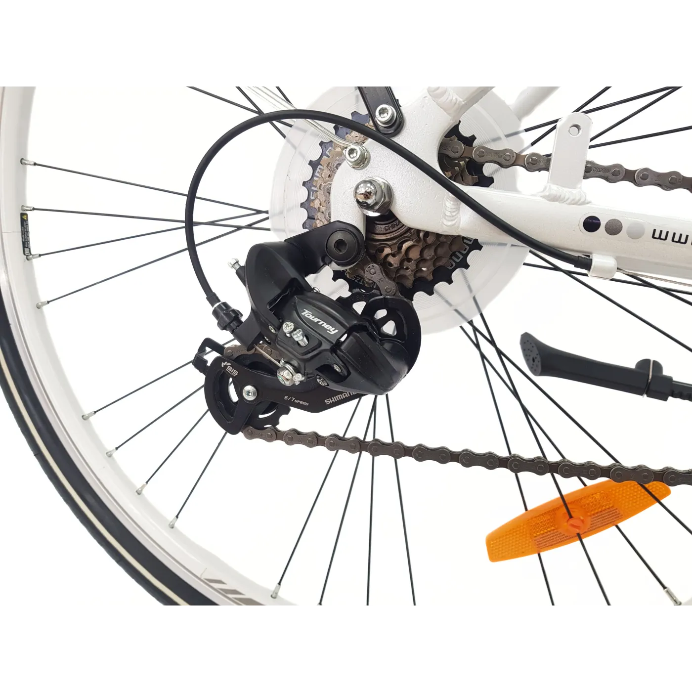 ✔️ Wyposażony w hamulce V-Brake, rower zapewnia skuteczne i bezpieczne hamowanie w każdej sytuacji. Dzięki 21-biegowej przerzutce Shimano, możesz łatwo dostosować prędkość jazdy do warunków drogowych i swoich preferencji. Manetka cynglowa pozwala płynnie zmieniać biegi, co sprawia, że jazda jest jeszcze bardziej komfortowa i przyjemna.