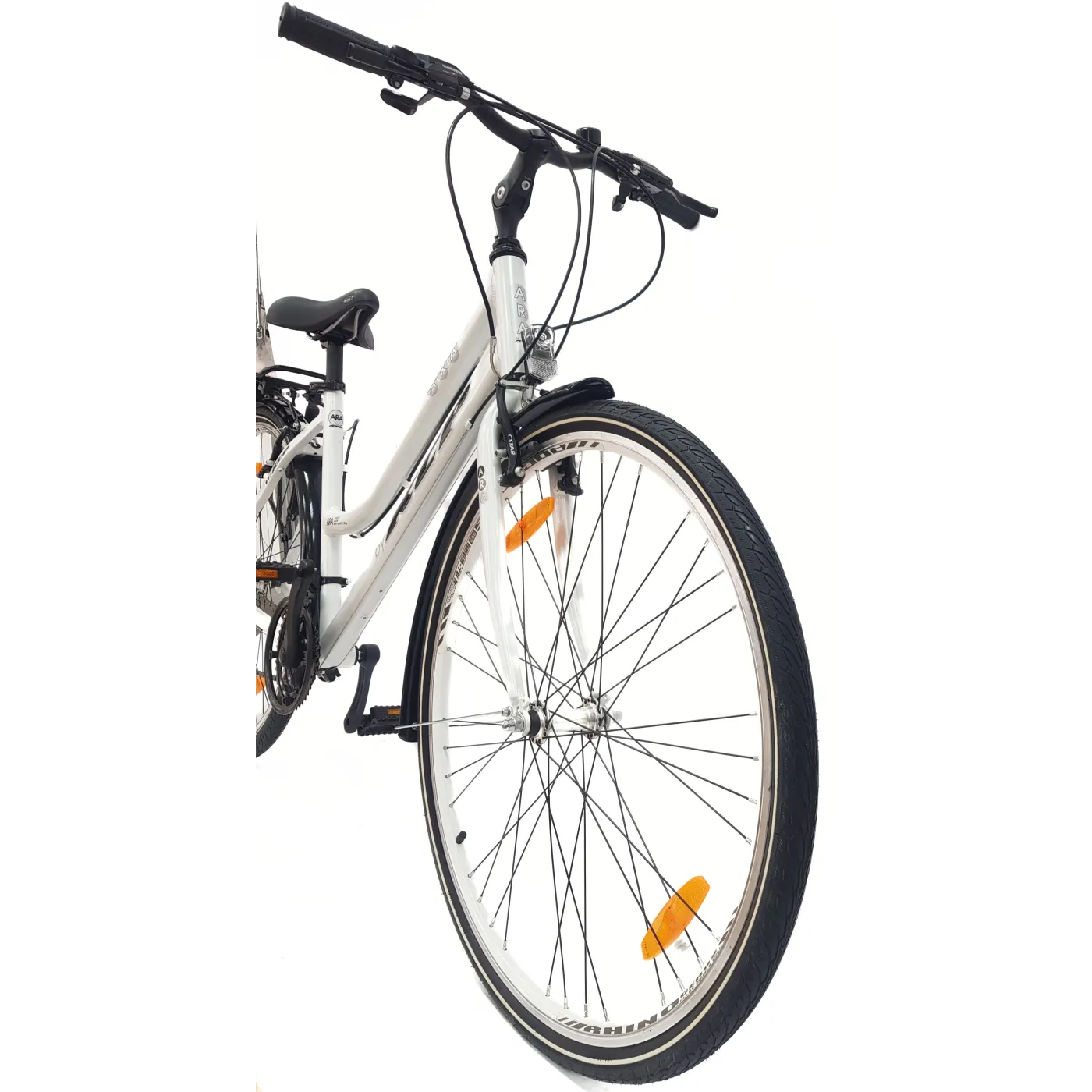 👌 Opony w rozmiarze 28" 700 x 40C gwarantują doskonałą przyczepność do różnego rodzaju nawierzchni i zapewniają wysoką stabilność. Dodatkowo, model ten posiada błotniki, które chronią Cię przed błotem i wodą podczas jazdy w deszczowe dni. Światła i dzwonek sprawiają, że jesteś widoczny i słyszalny na drodze, co zwiększa Twoje bezpieczeństwo.