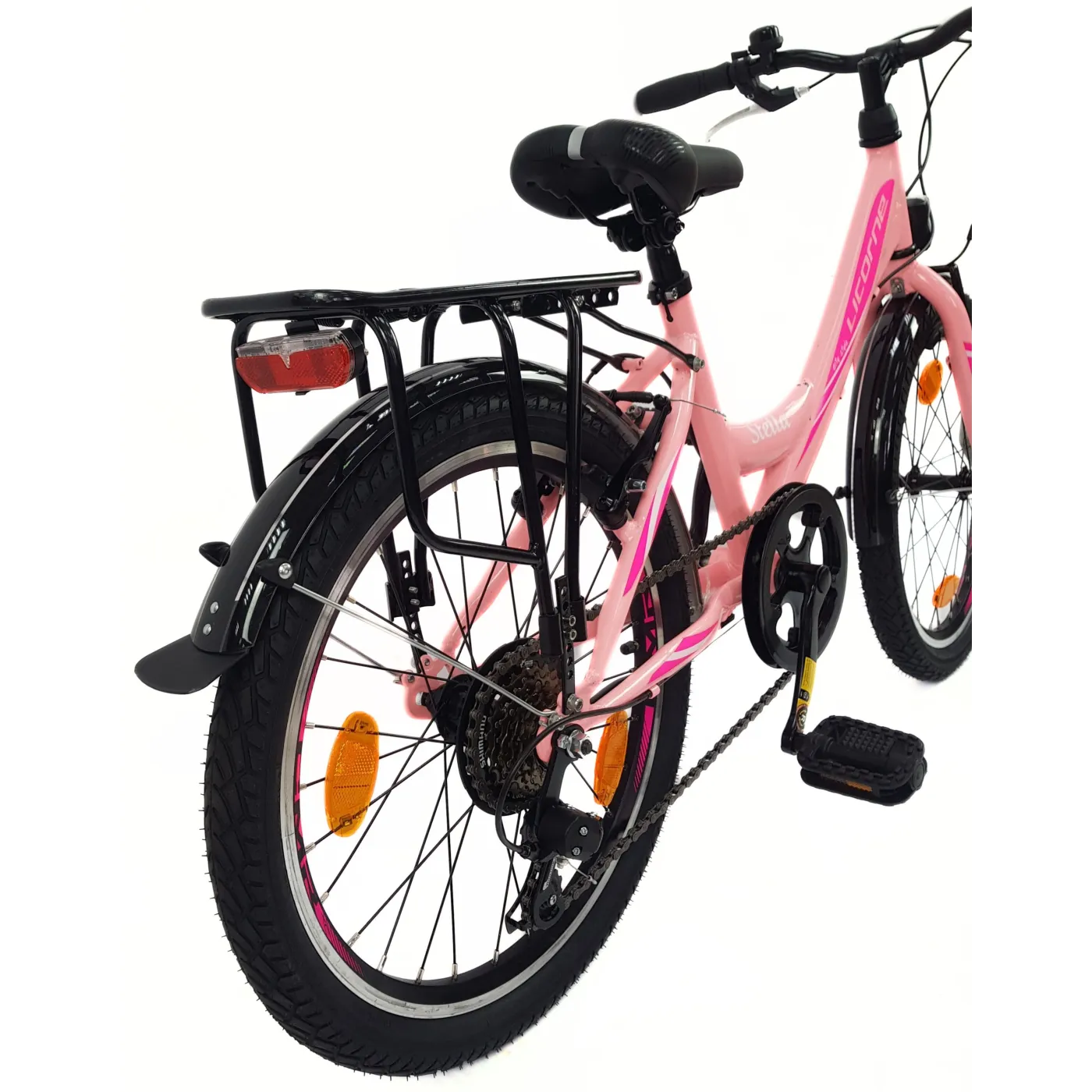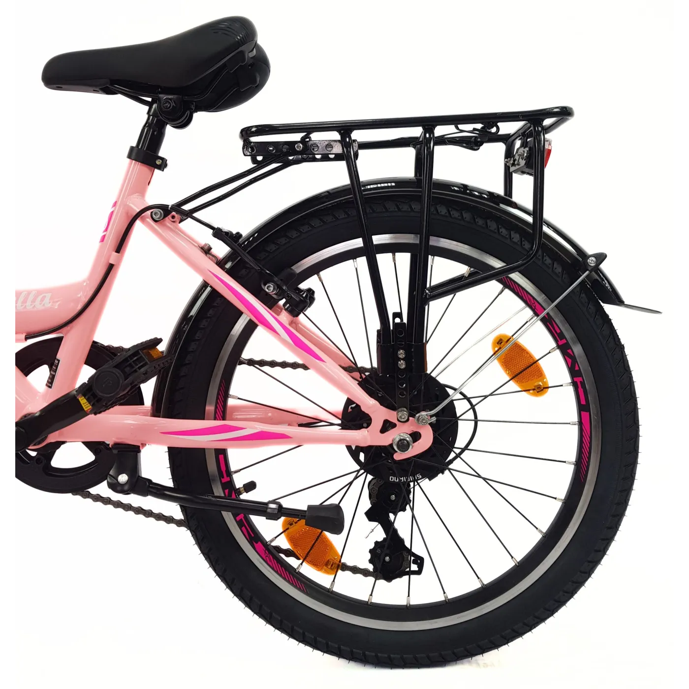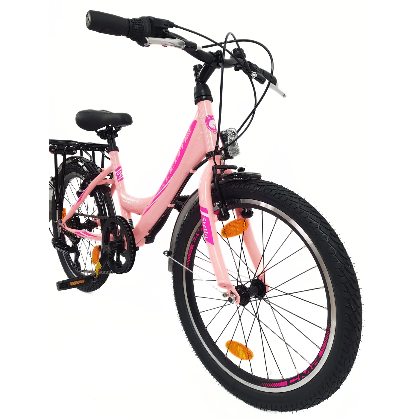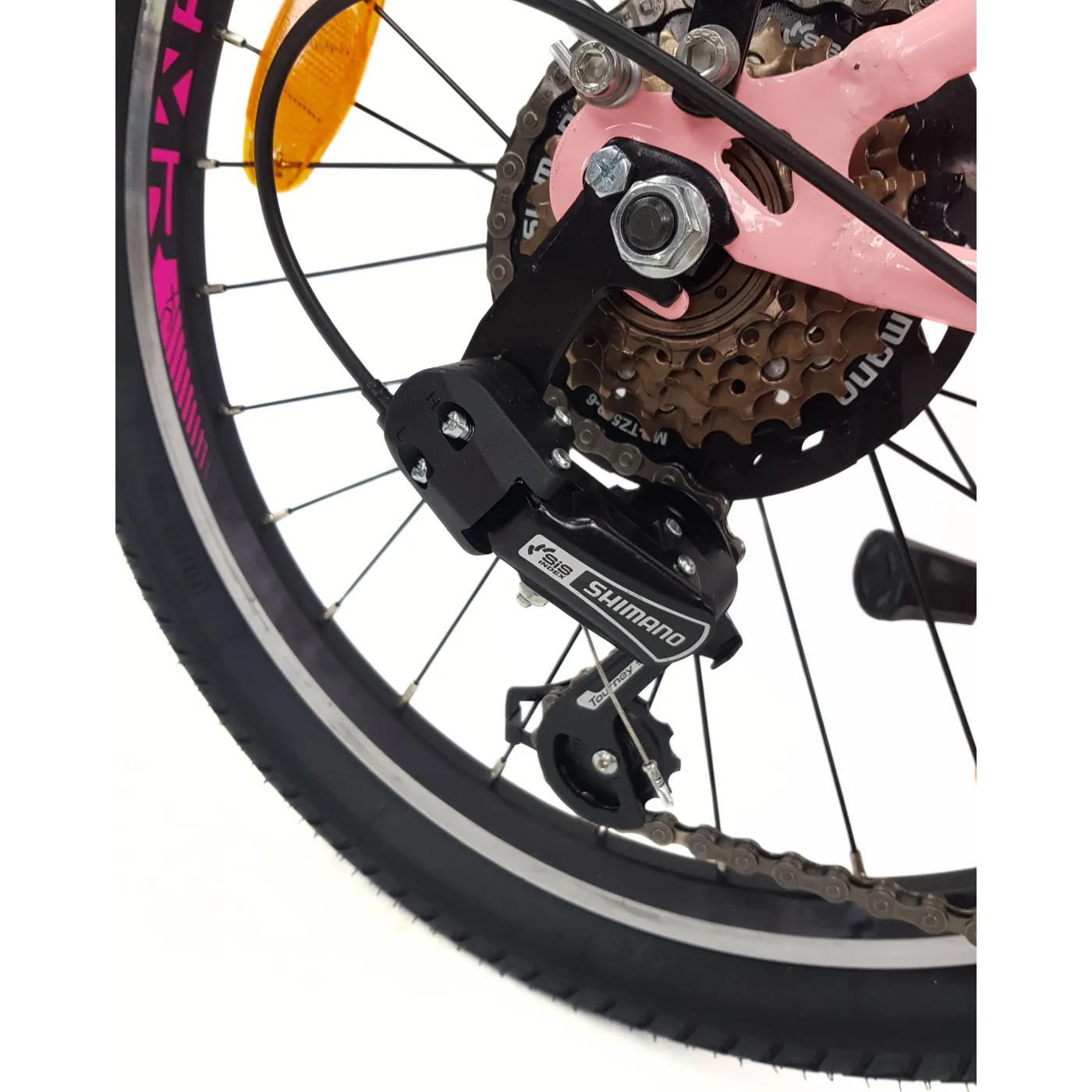 🌈 Z 6-biegową przerzutką Shimano Tourney dziewczynka może dostosować tempo jazdy do własnych preferencji i warunków drogowych. Koła o średnicy 20" oraz opony o szerokości 1,75" zapewniają komfortową i stabilną jazdę po każdym terenie.