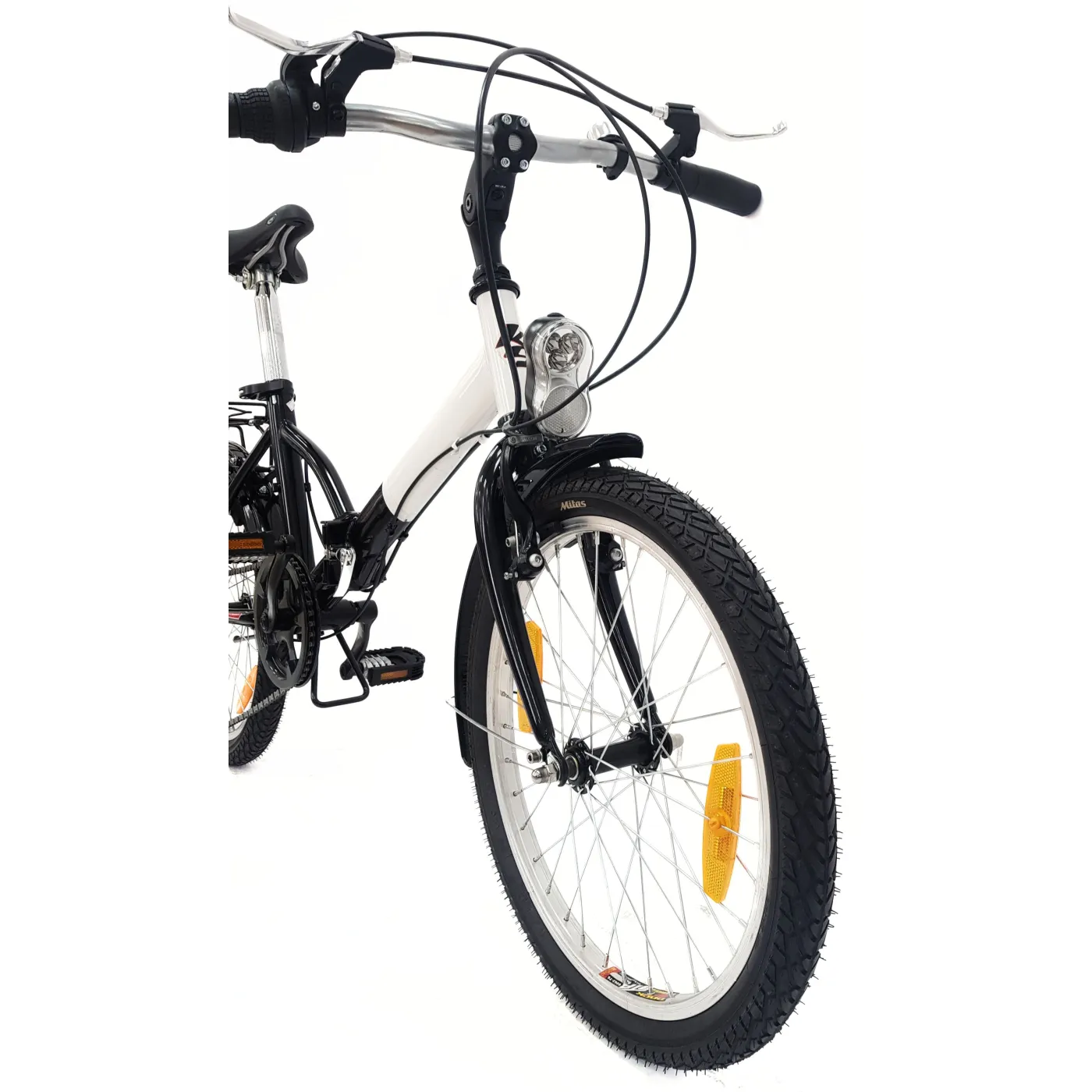 👌 Dzięki niewielkim wymiarom po złożeniu (80 x 70 x 35 cm), rower łatwo można transportować i przechowywać nawet w ograniczonej przestrzeni. Dodatkowo, wyposażony w światła, dzwonek, bagażnik oraz odblaski, umożliwia bezpieczne poruszanie się po drogach nawet po zmroku, co jest niezwykle istotne.