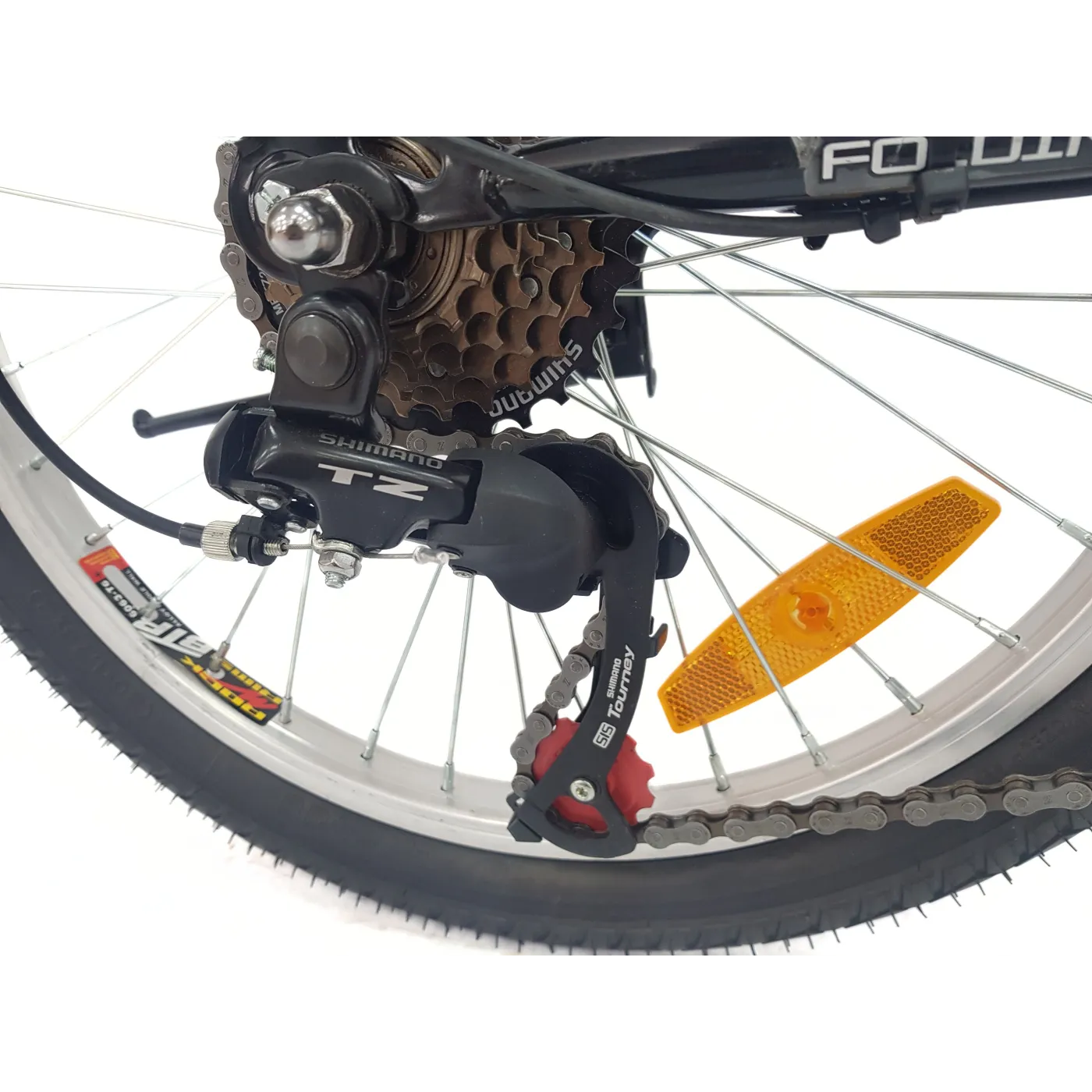 ✔️ Wyposażony w 6-biegową przerzutkę Shimano oraz manetkę obrotową Revoshift, rower pozwala dostosować intensywność jazdy do własnych preferencji. Opony w rozmiarze 20" x 1,75" zapewniają stabilność i komfort podczas podróży, a także gwarantują dobrą przyczepność do podłoża.
